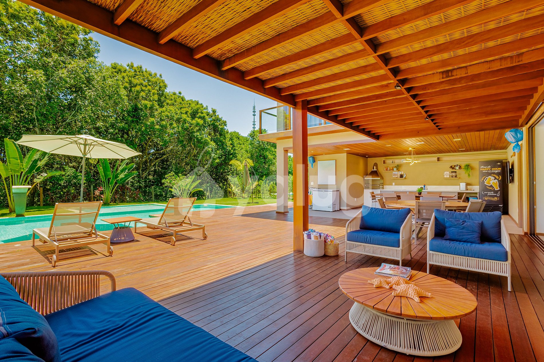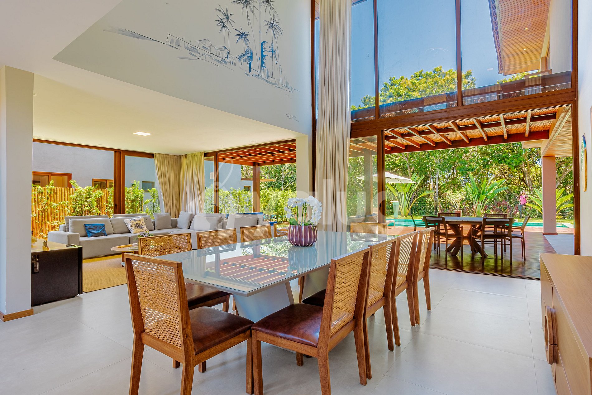 There are 7 air-conditioned suites, spacious and integrated living rooms, a fully equipped kitchen, and a gourmet area with a private pool and hot tub, ideal for sharing laughter, good times, and unforgettable days.