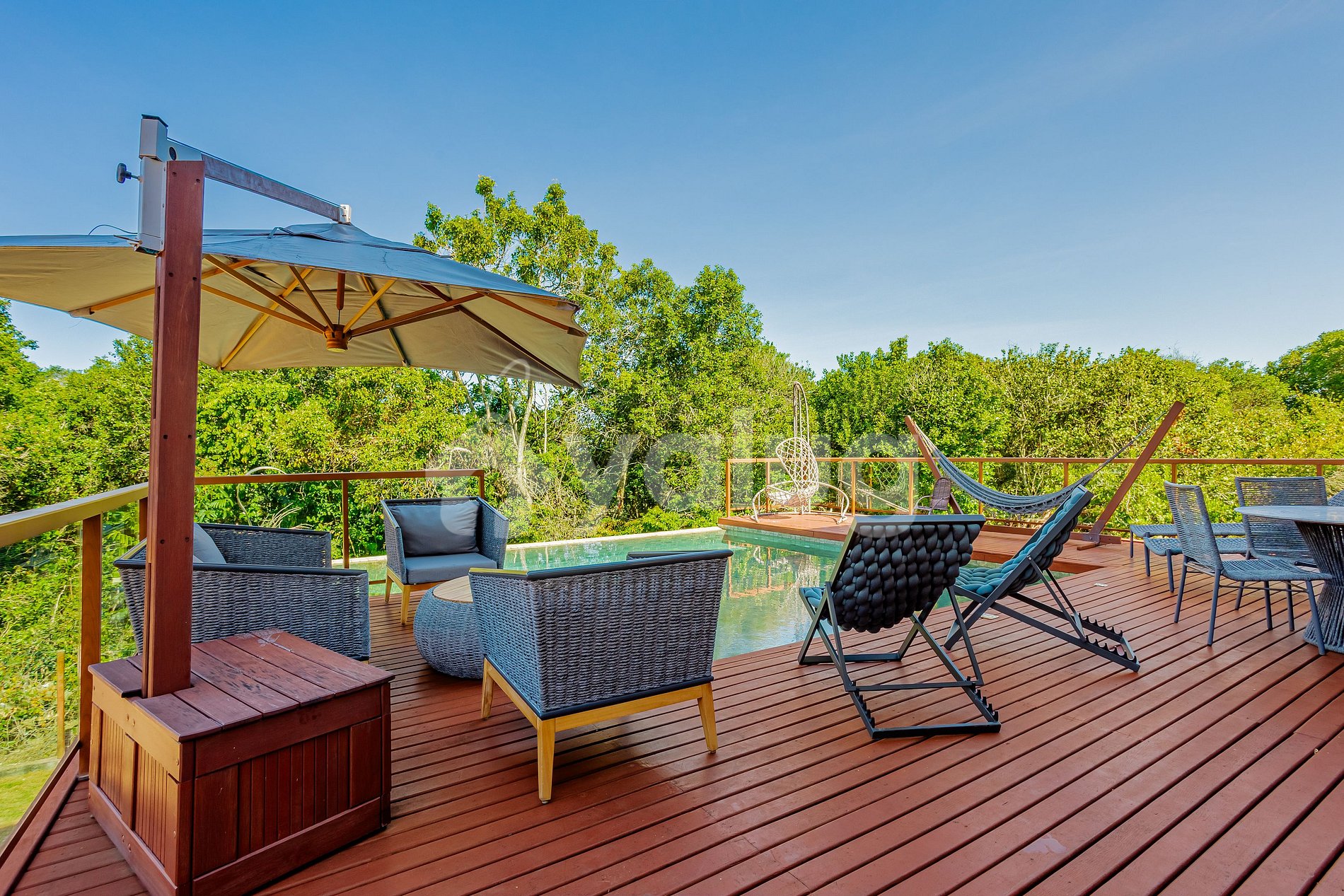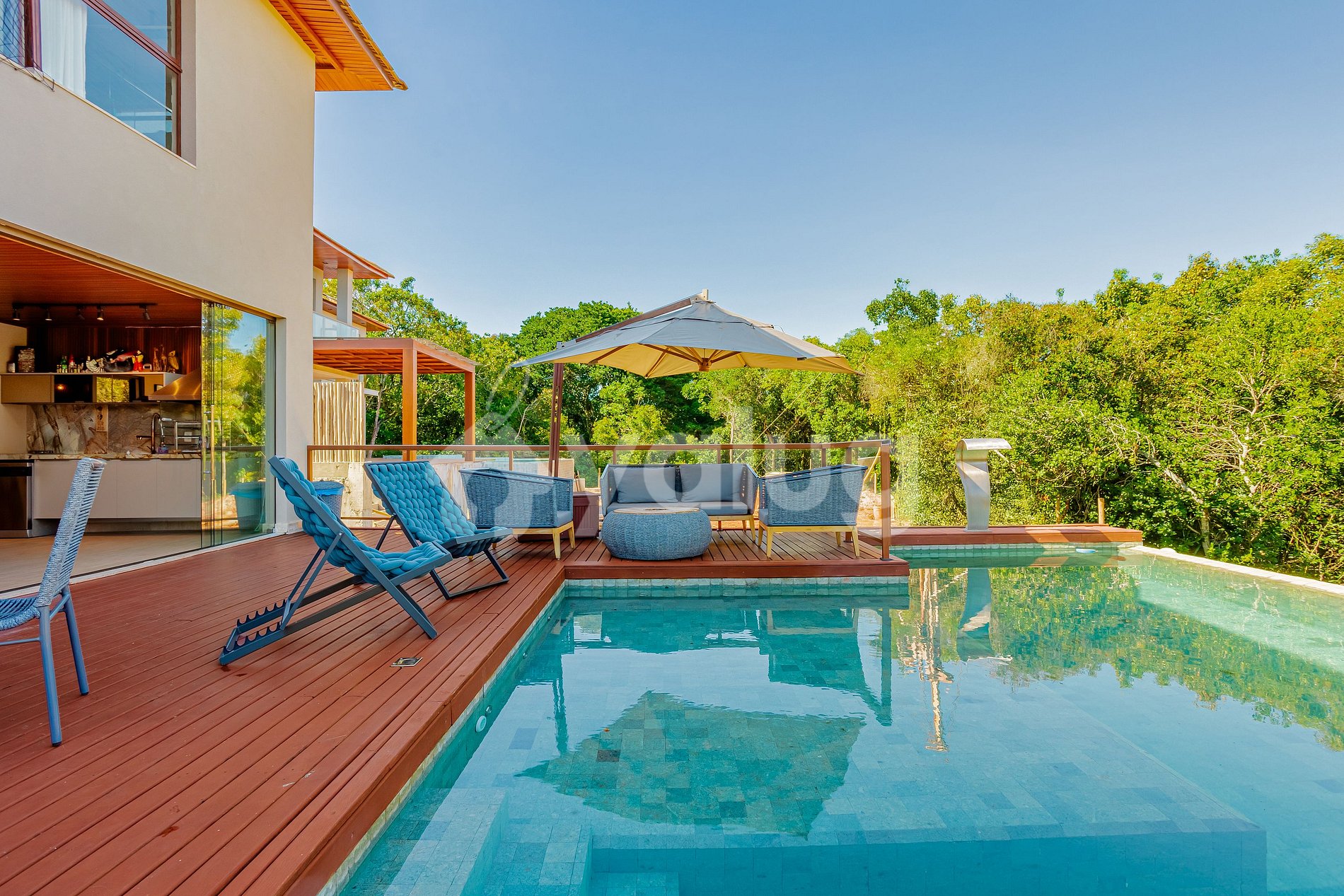 The residence features a living room, 4 bedrooms, 3 of which are suites, all air-conditioned, and a fully equipped kitchen. The gourmet area includes a garden, outdoor furniture, barbecue, and high-quality utensils. And to complete the experience, a beautiful swimming pool with sun loungers. Everything has been designed to make your stay safe and unforgettable.