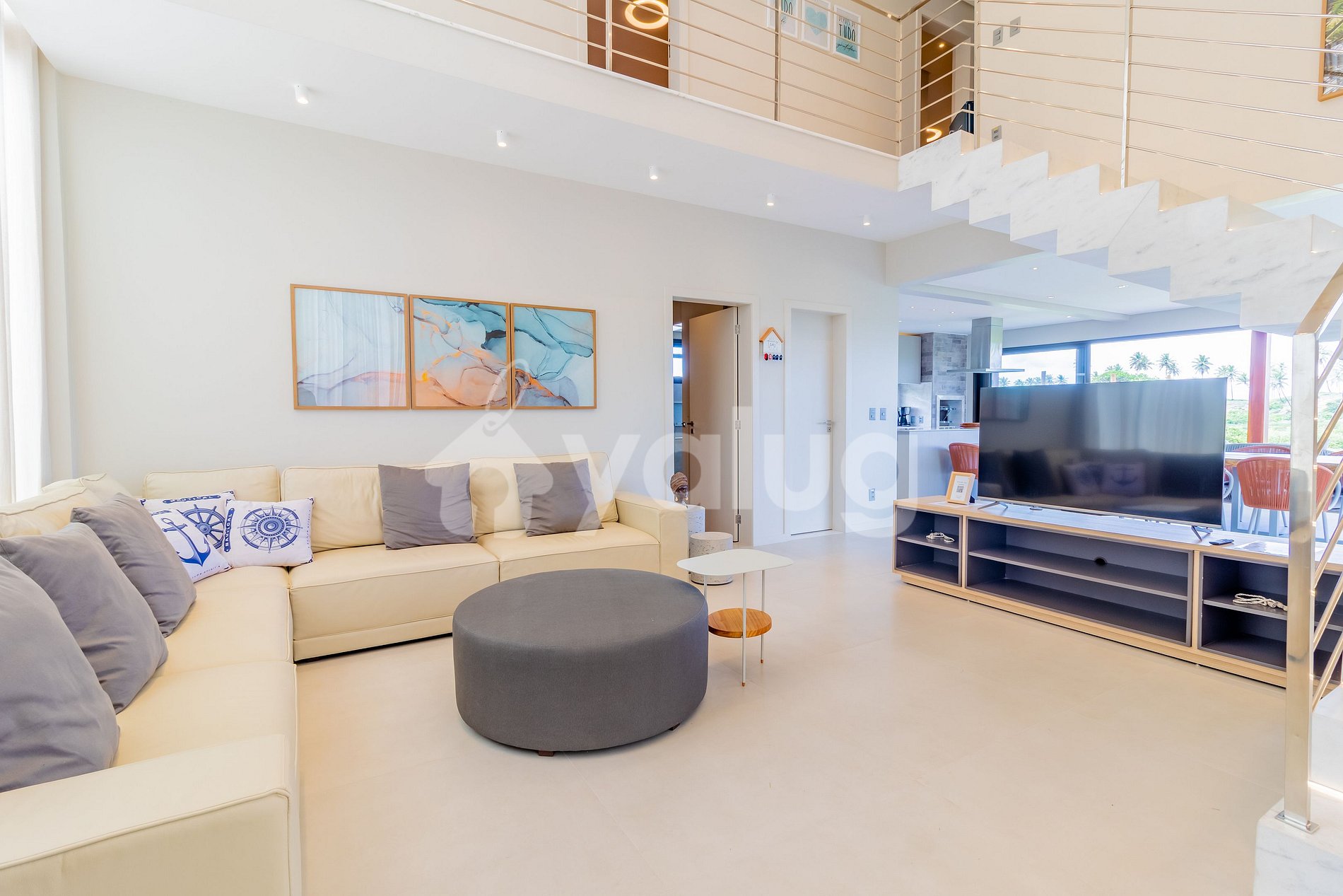 It has a living room, full kitchen, 5 suites (1 on the ground floor) and all with split-type air conditioning. It has a wonderful outdoor area, with swimming pool, hammocks and barbecue.