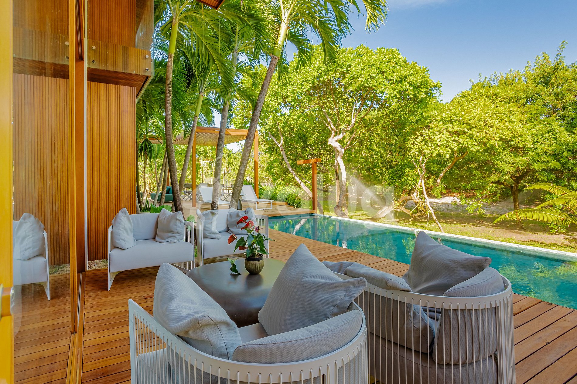 Suite 1 (upper floor): 1 queen bed, 1 single bed + 1 extra bed, split air conditioning, Smart TV, blackout curtains, wardrobe and balcony overlooking the pool;