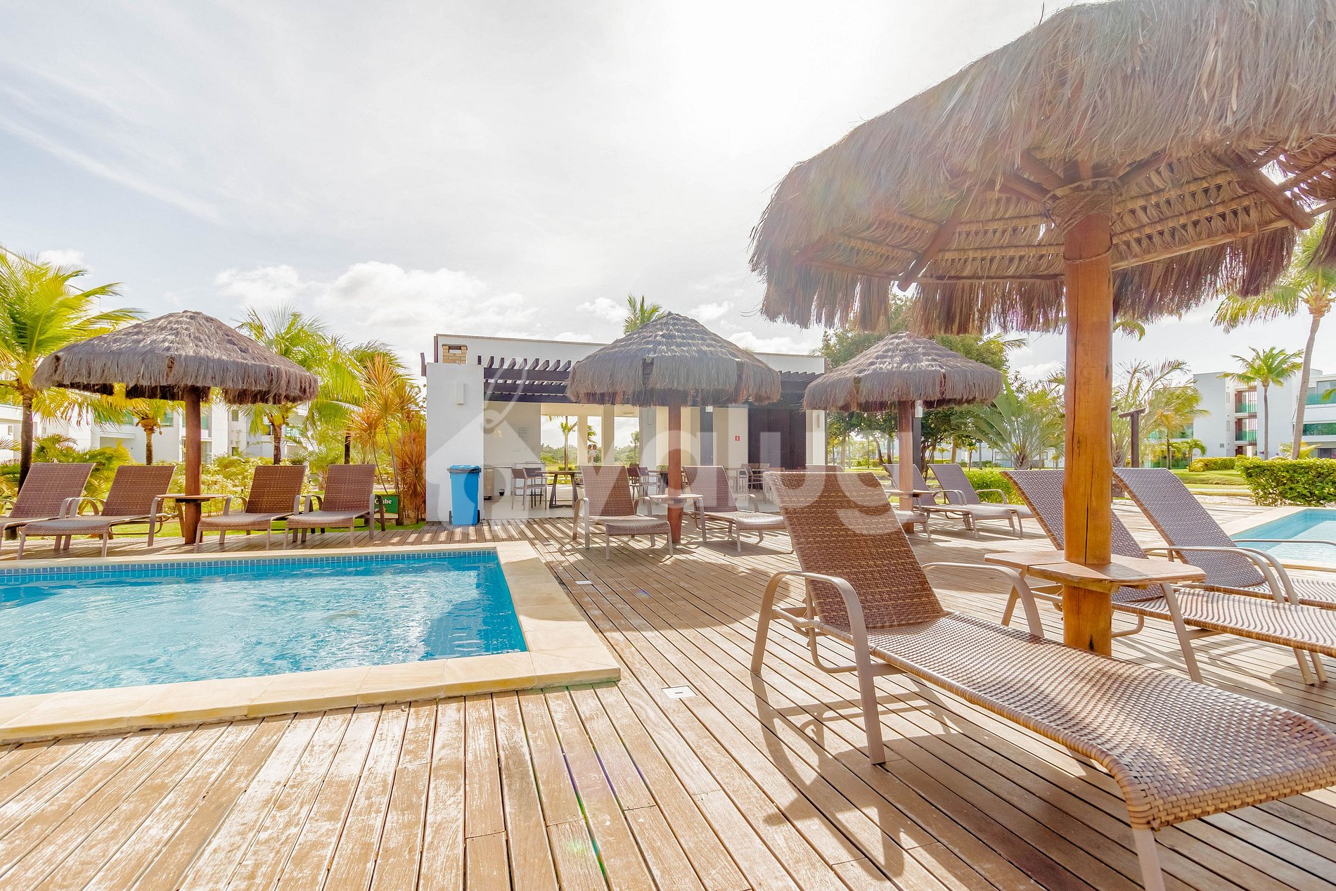 400m from the beach, with exclusive access, the Condominium has adult and children's swimming pools, air-conditioned gym, children's playground, sports court, beach club with restaurant-bar, sun loungers, chairs and umbrella service. Exclusive path through Klaus Peters Park to the village of Praia do Forte.