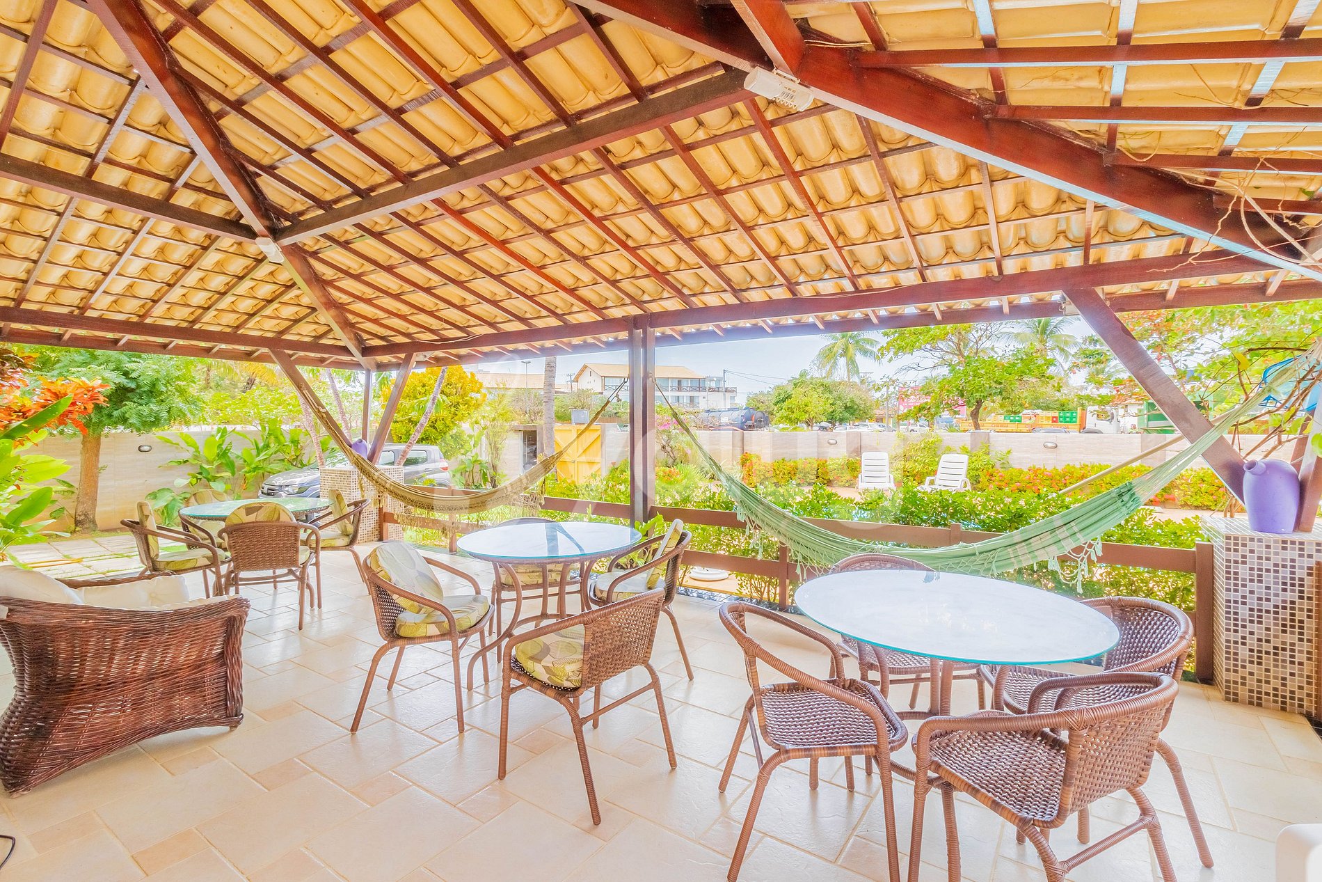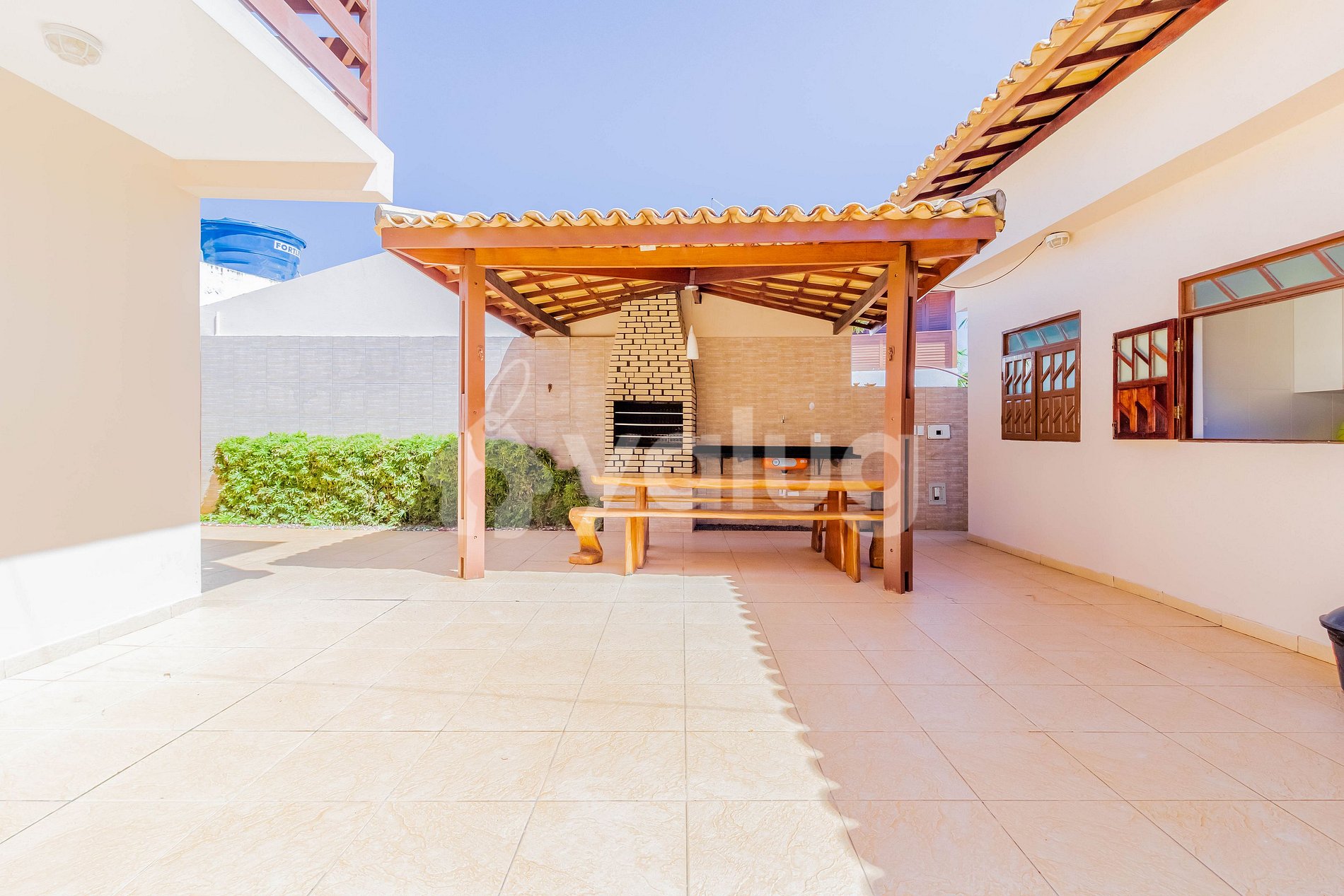 Great house, located in Condomínio Mar Azul, 50m from Praia de Guarajuba and next to the best tents (Prefeitinho and Carlinhos), with full infrastructure, 24-hour security, sports area (gym and courts) and ballroom.