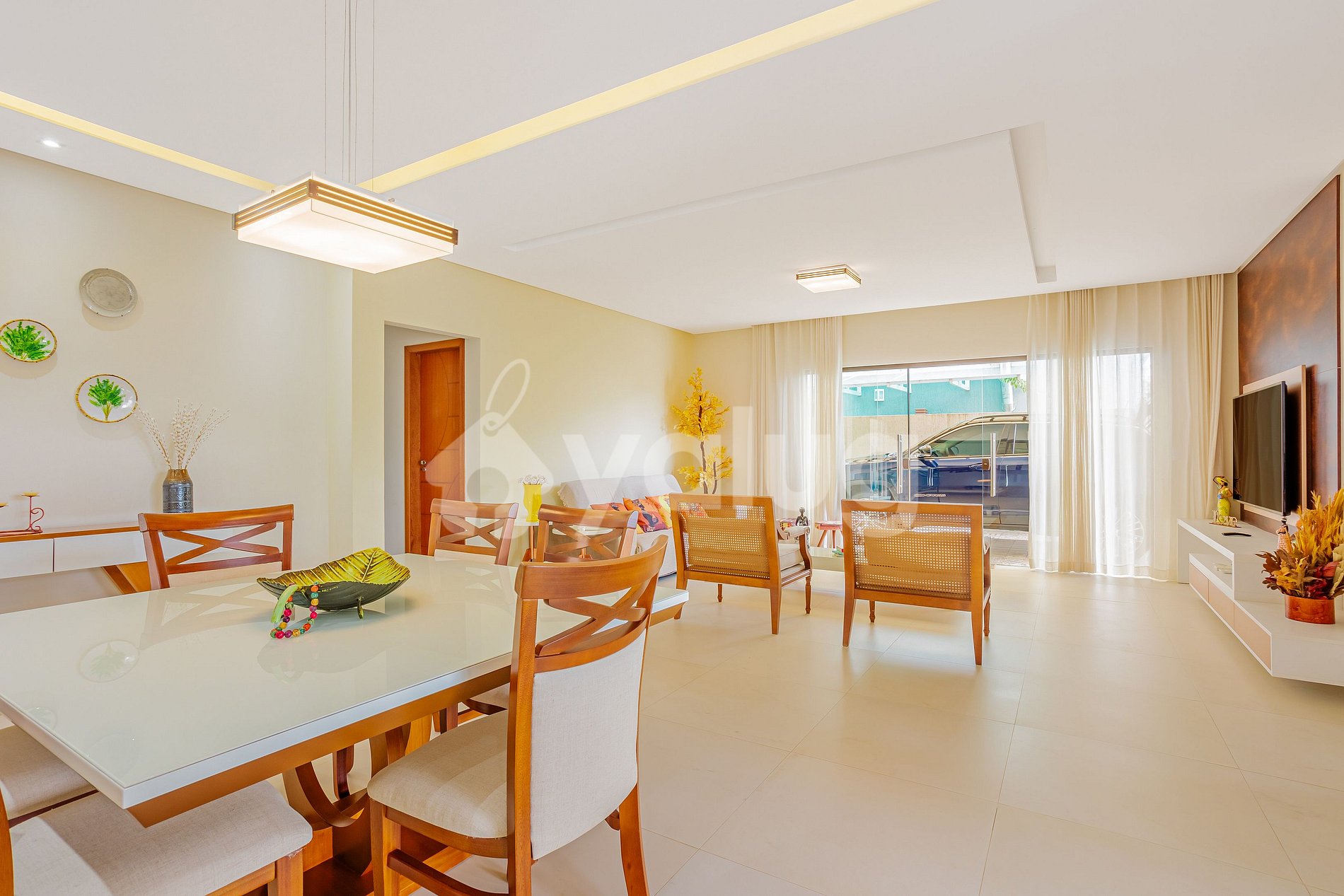 The property consists of a cozy and decorated living room, with sofa, armchair and TV, 5 suites all with TV, closets and air conditioning. Full kitchen with all the items for your stay, gourmet area with barbecue, rocking chair, private pool, TV and much more!