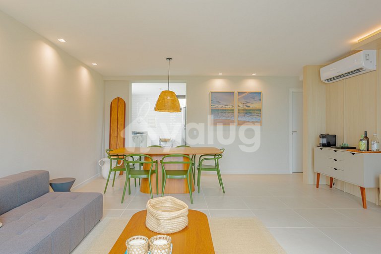 Excellent apartment, with sea view, equipped with 2 suites and 1 single bedroom, both air-conditioned, finely decorated living and dining room, fully equipped kitchen with all the necessary items for your best stay, excellent gourmet area on the terrace with barbecue, minibar and beautiful view.