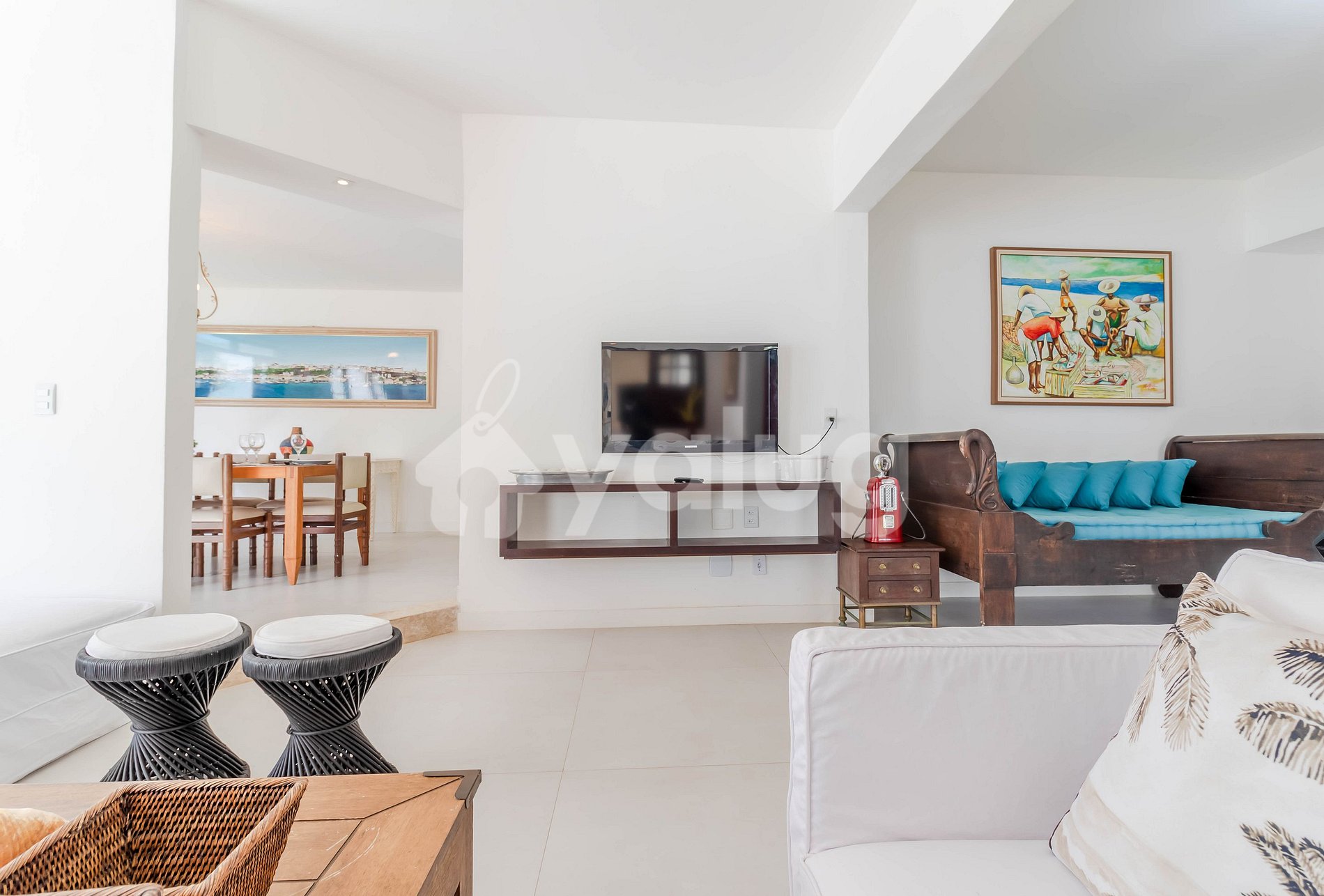 Great House 5 suites (1 on the ground floor), located in the Loteamento Pedra do Sal, in Itapuã, just 100m from the beach and 300m from Barraca do Lôro.