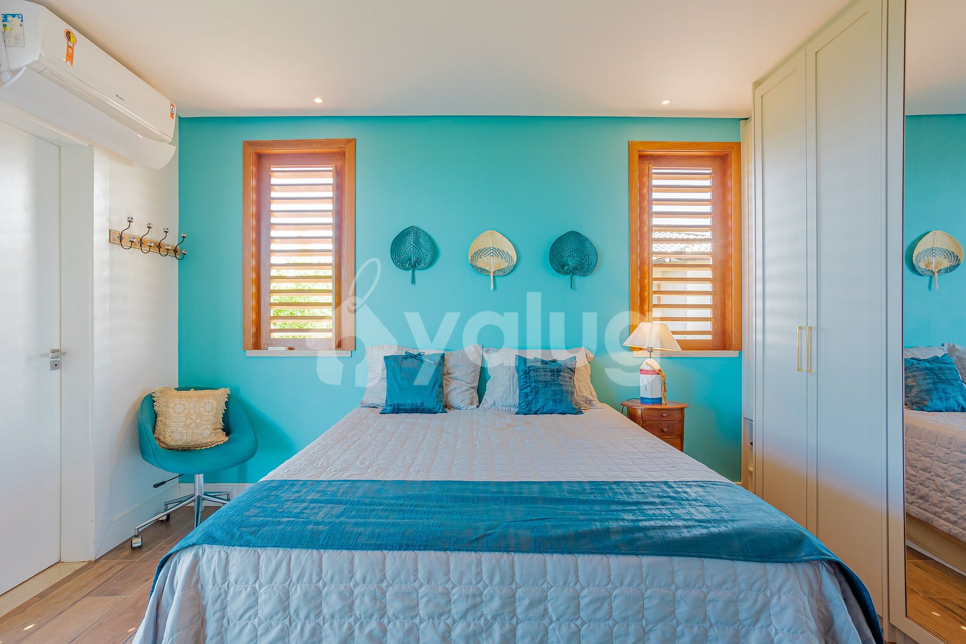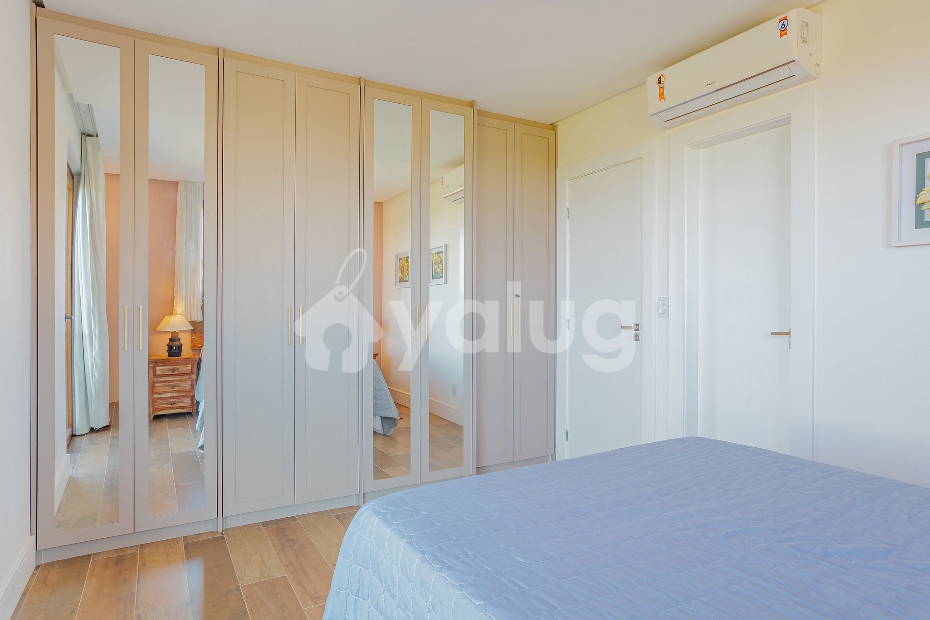 Suíte 4 (Ground floor): 1 double bed, balcony, air conditioning, curtain, black out and closet.