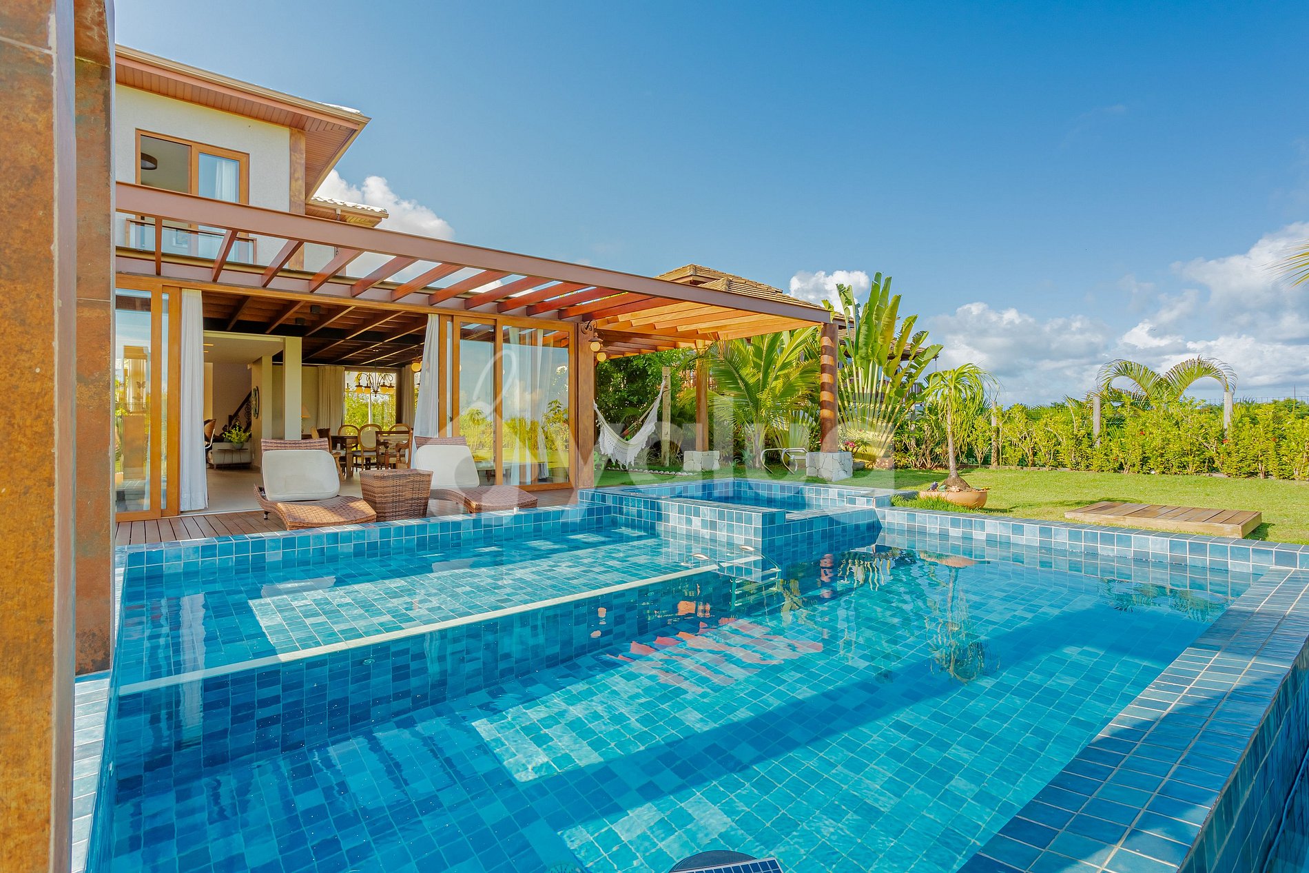 The house is spectacular! It has 4 comfortable and air-conditioned suites, 3 of which have a balcony; large and beautifully decorated room; Full kitchen with all items needed for your stay. In addition to all this, it has an incredible furnished gourmet area, swimming pool with hydromassage, barbecue and garden.
