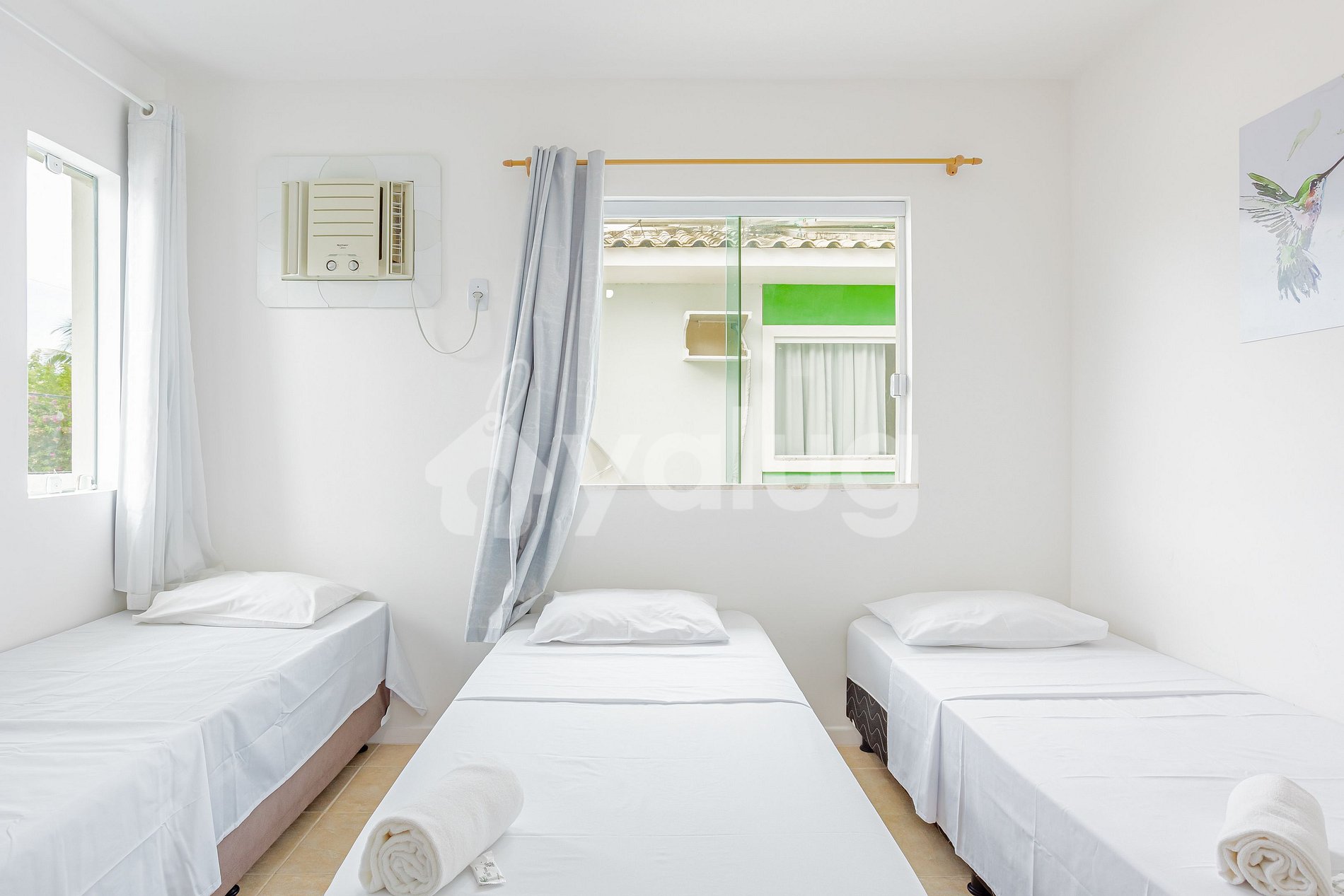 - Suite 2 (superior): 3 single beds, TV, split air conditioning, closet, fan and blackout curtain.