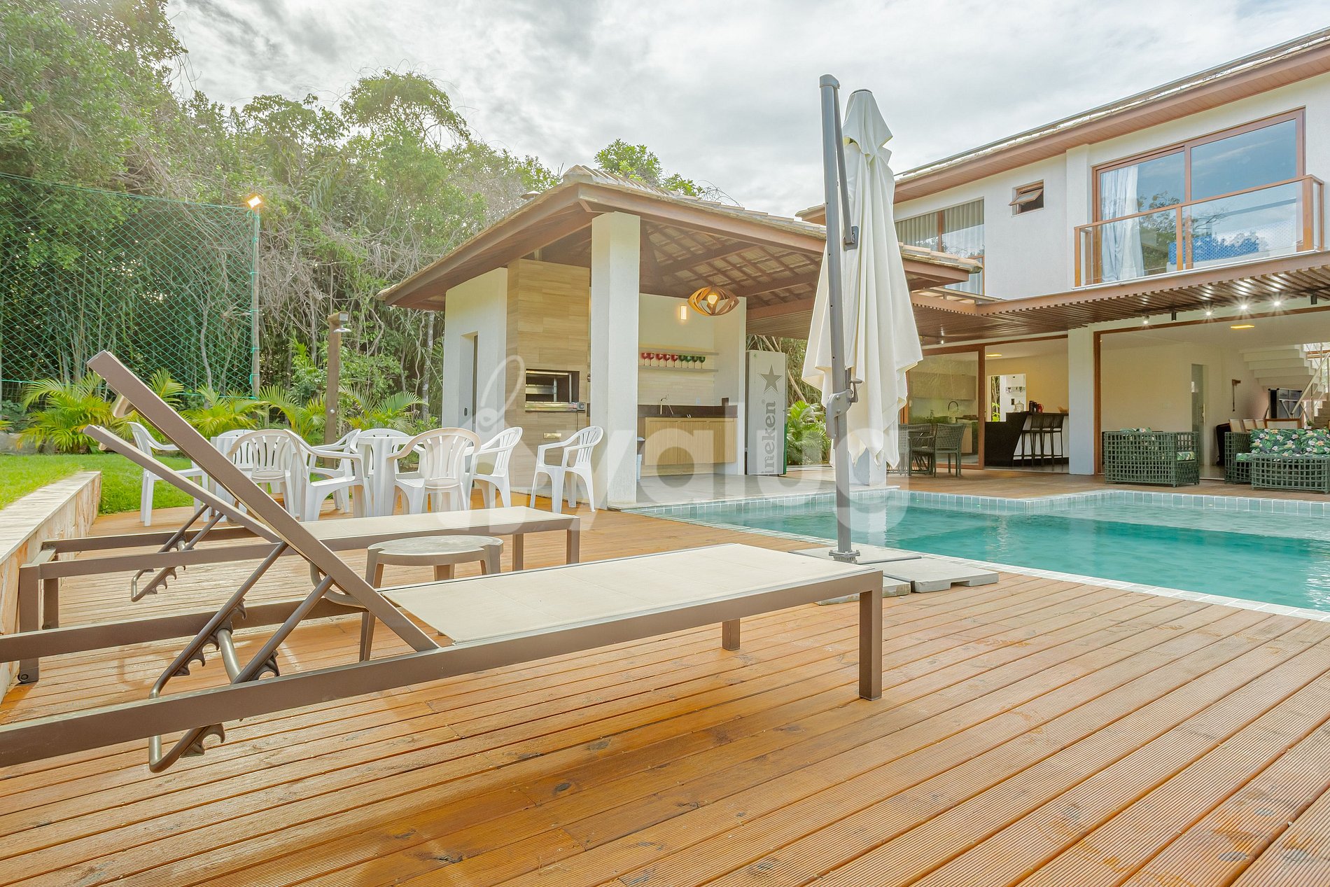 Accommodation consisting of 5 suites, furnished and air-conditioned. It also has a living and dining room, a fully equipped kitchen and a charger for an electric vehicle. Gourmet area with barbecue, a beautiful swimming pool, volleyball court, sauna, and much more for you to enjoy during your stay.