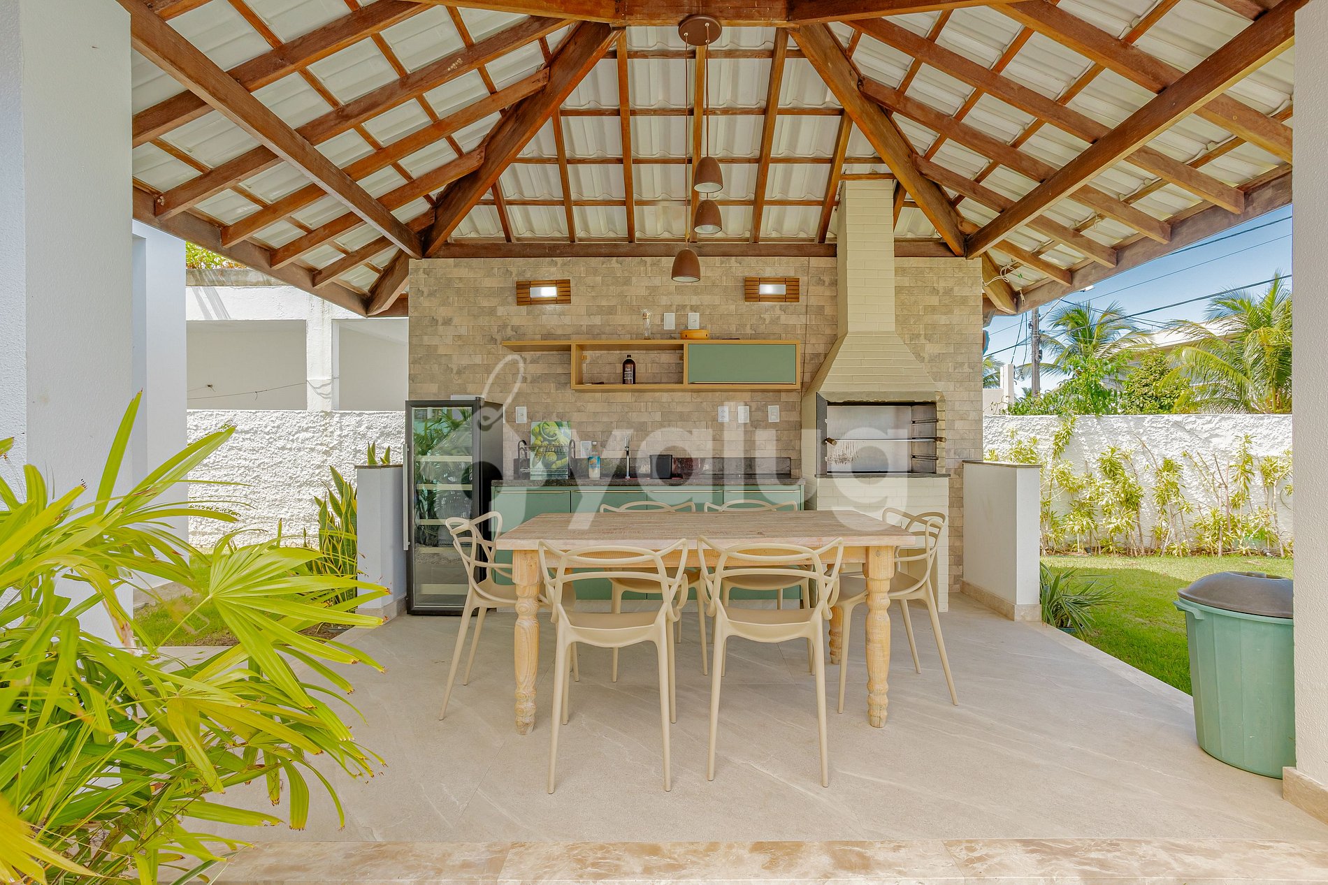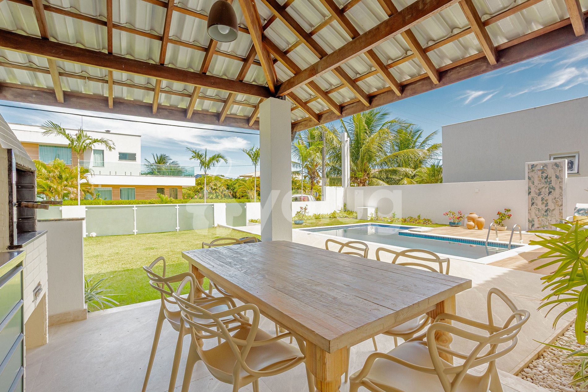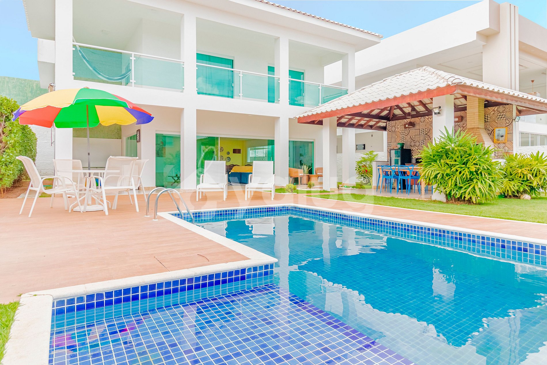 The space consists of 5 bedrooms, 4 of which are suites and all with Split air conditioning, living room, full kitchen. In addition, it also offers a great outdoor area with barbecue, green area and swimming pool!