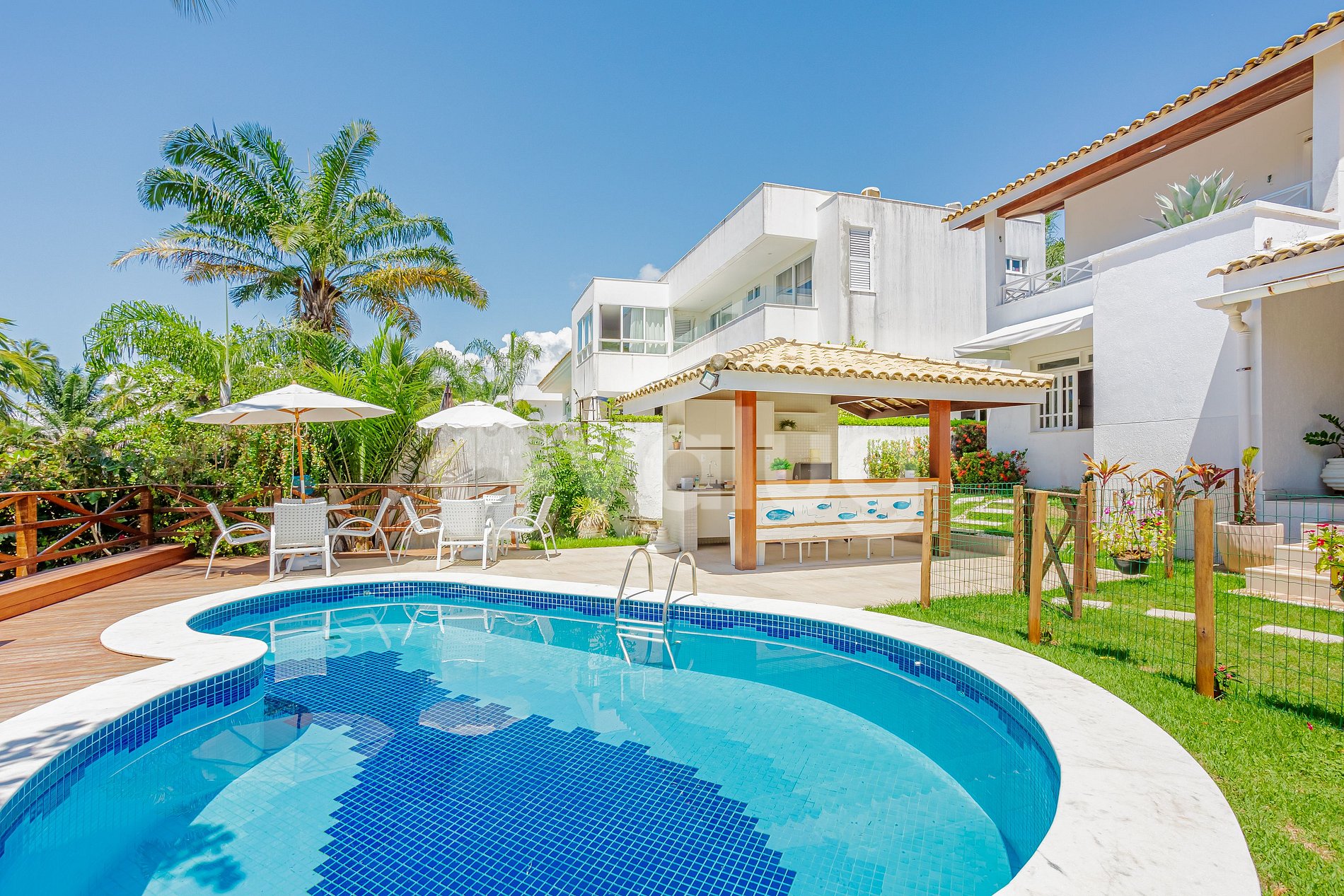 This wonderful house has 5 beautiful suites (2 with jacuzzi), full kitchen, living room, TV and dining room. The gourmet area has an incredible swimming pool, outdoor furniture, barbecue, garden and pier on the river.