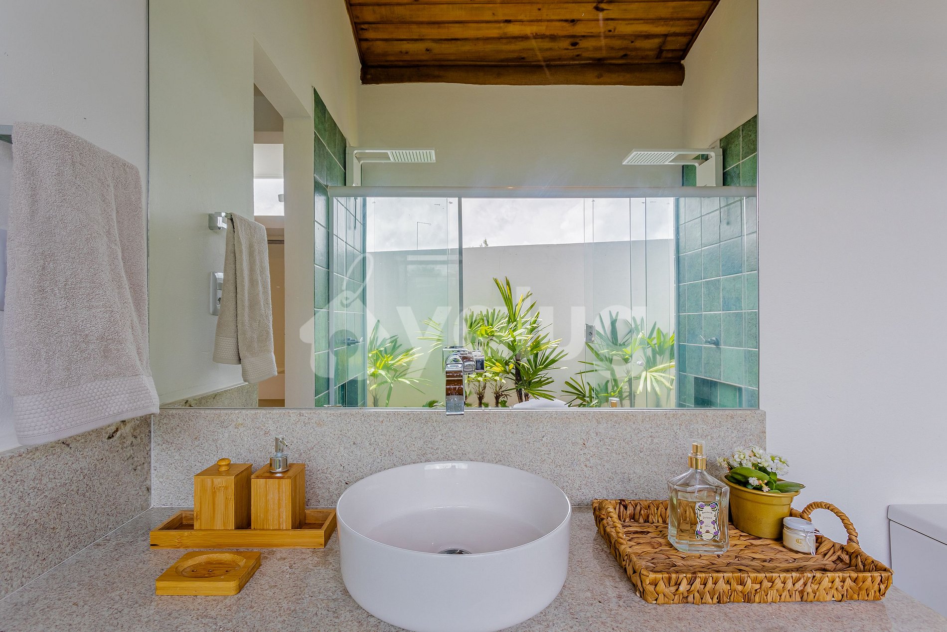 Despite not being in a condominium, the house is in an area with 24-hour patrol, providing security! It has 3 air-conditioned suites, wi-fi, living room and full kitchen. In the outdoor area, gourmet space with barbecue, wonderful swimming pool and garden!
