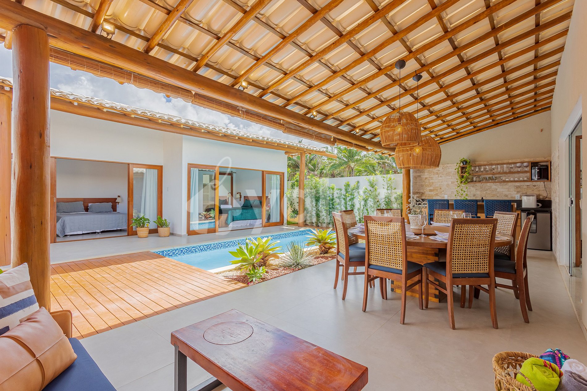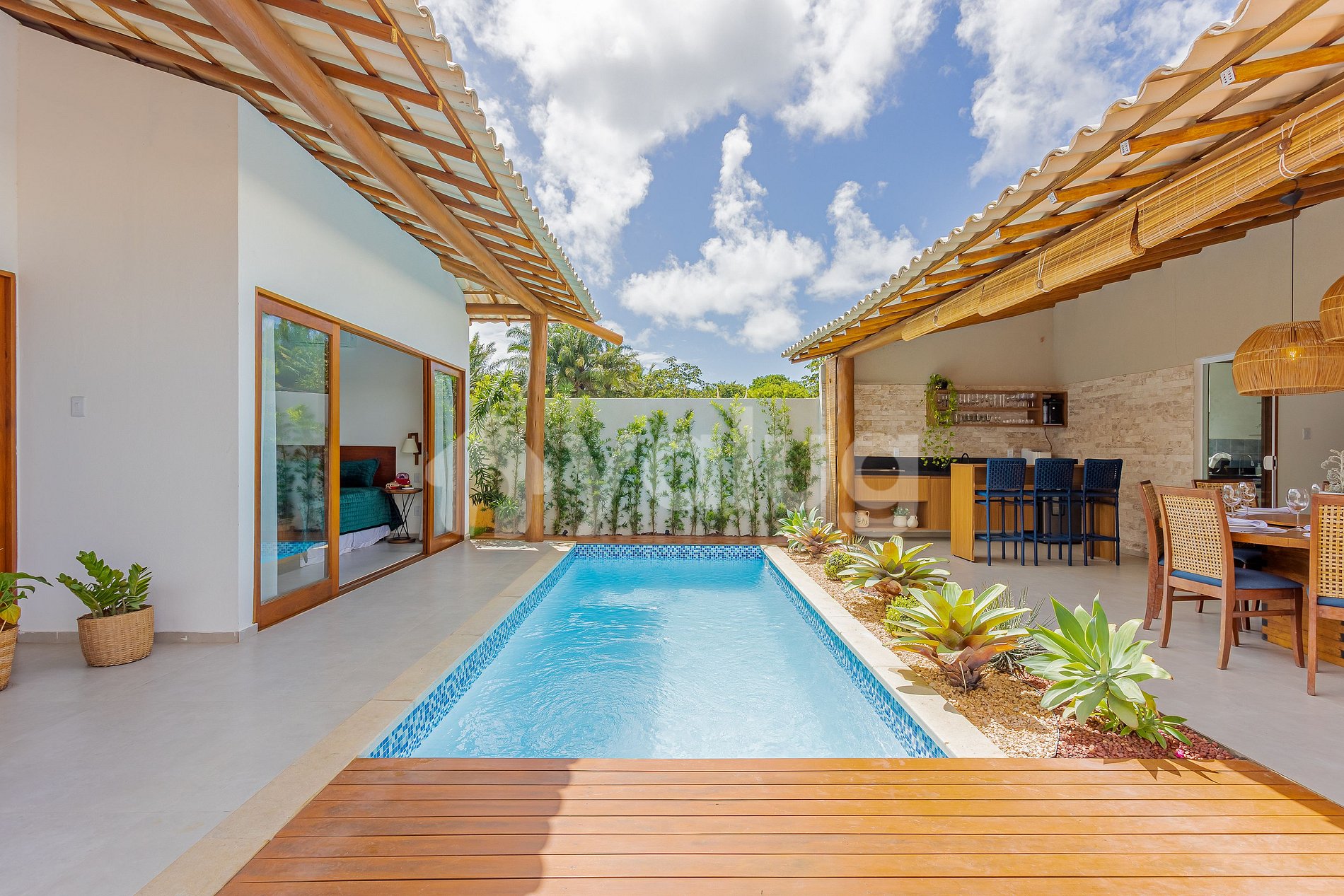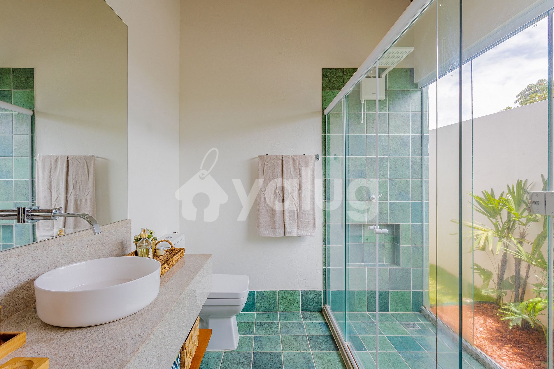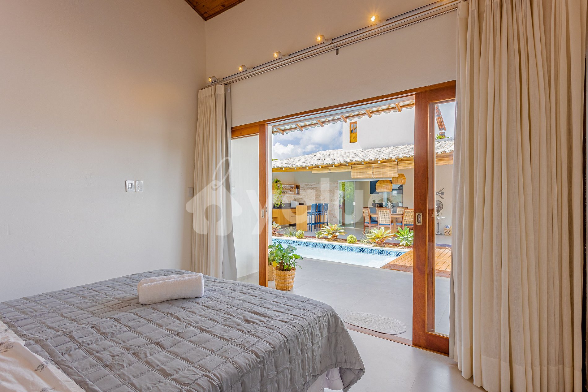 Despite not being in a condominium, the house is in an area with 24-hour patrol, providing security! It has 3 air-conditioned suites, wi-fi, living room and full kitchen. In the outdoor area, gourmet space with barbecue, wonderful swimming pool and garden!