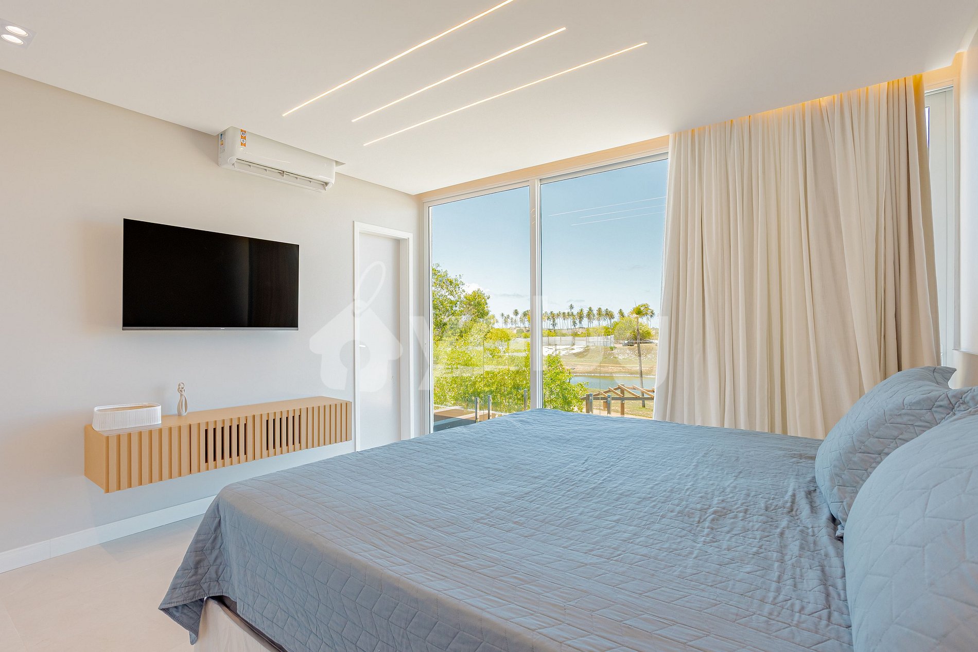 In addition to everything the condominium offers (total infrastructure, swimming pool, gourmet lounge, kids space, ballroom, games room, playground, gym and sports courts), it also has private access to the beach, at a distance of approximately 5min on foot.