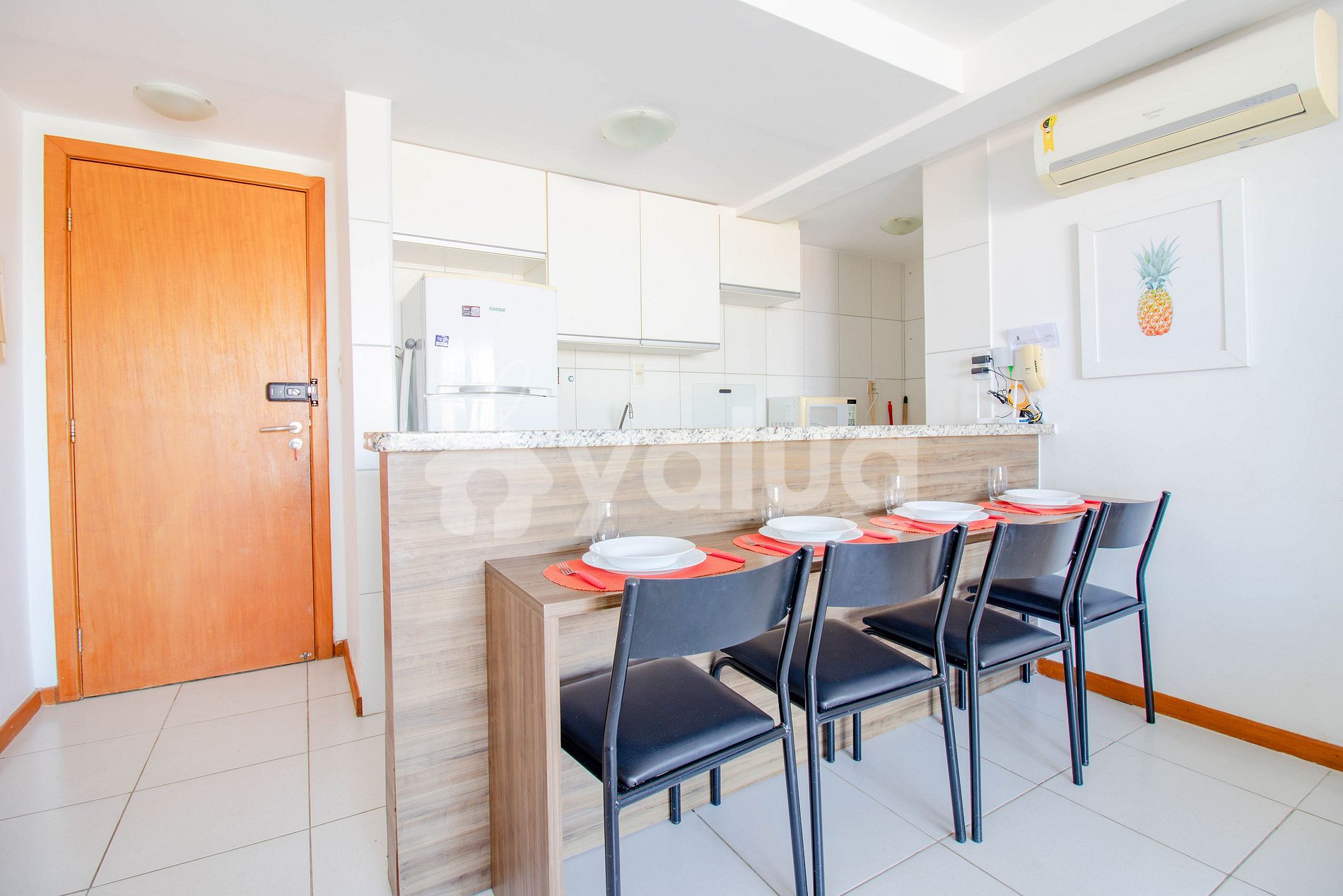 3) A porta da sala do apartamento, quando aberta e não fixada ao dispositivo que prende a mesma ao rodapé, fecha com muita força devido à ação do vento forte. Sugiro alertar aos hóspedes para ter cuidado com a situação descrita acima, pois poderá ocorrer acidentes principalmente com crianças.