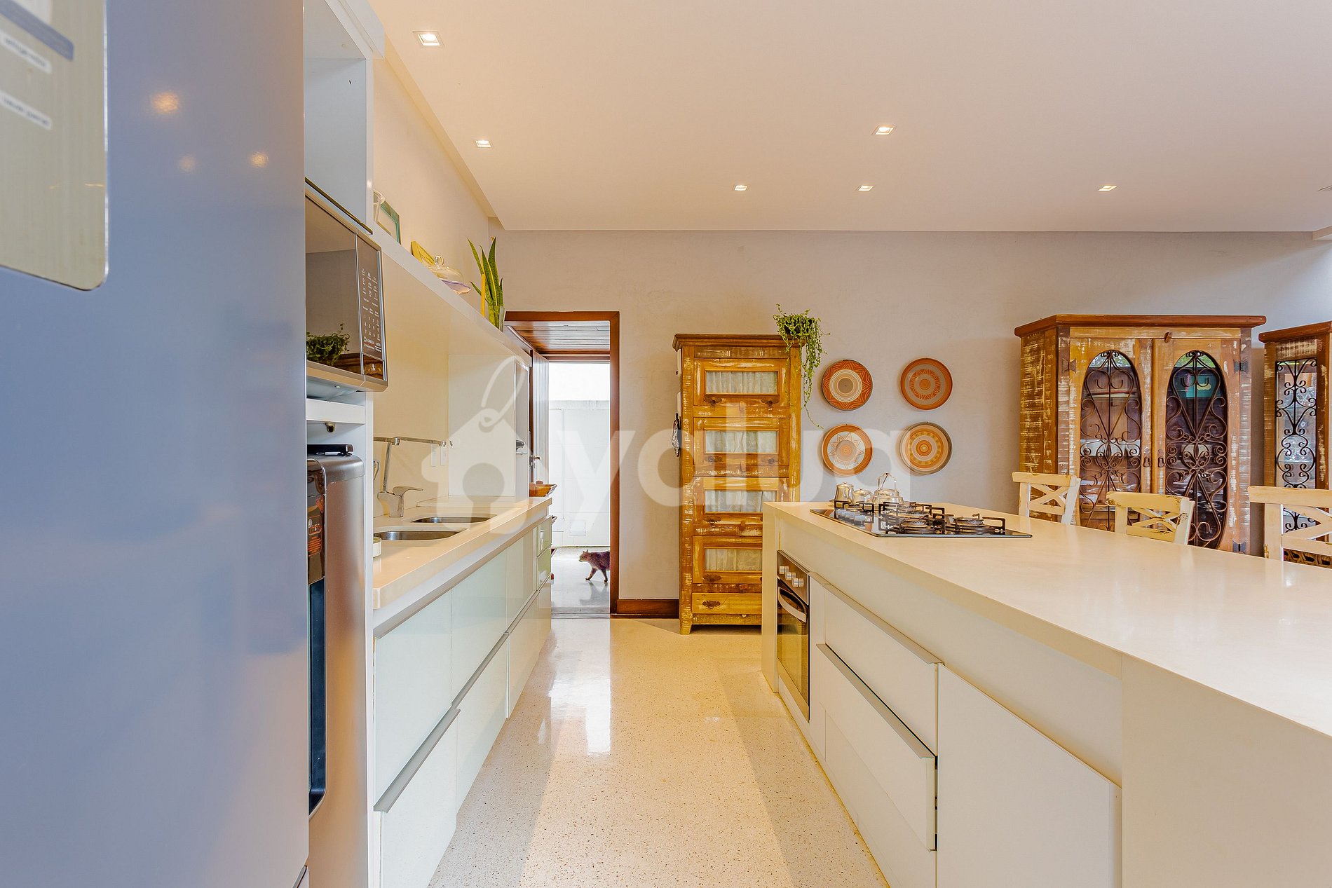 Fully furnished and decorated space! On the ground floor, an open concept, where the living room, kitchen and the entire outdoor area are integrated, which are surrounded by trees. In addition, it has 2 very cozy suites, like the rest of the house! It has another 3 suites on the upper floor, and in the external area a great swimming pool, barbecue and green area.