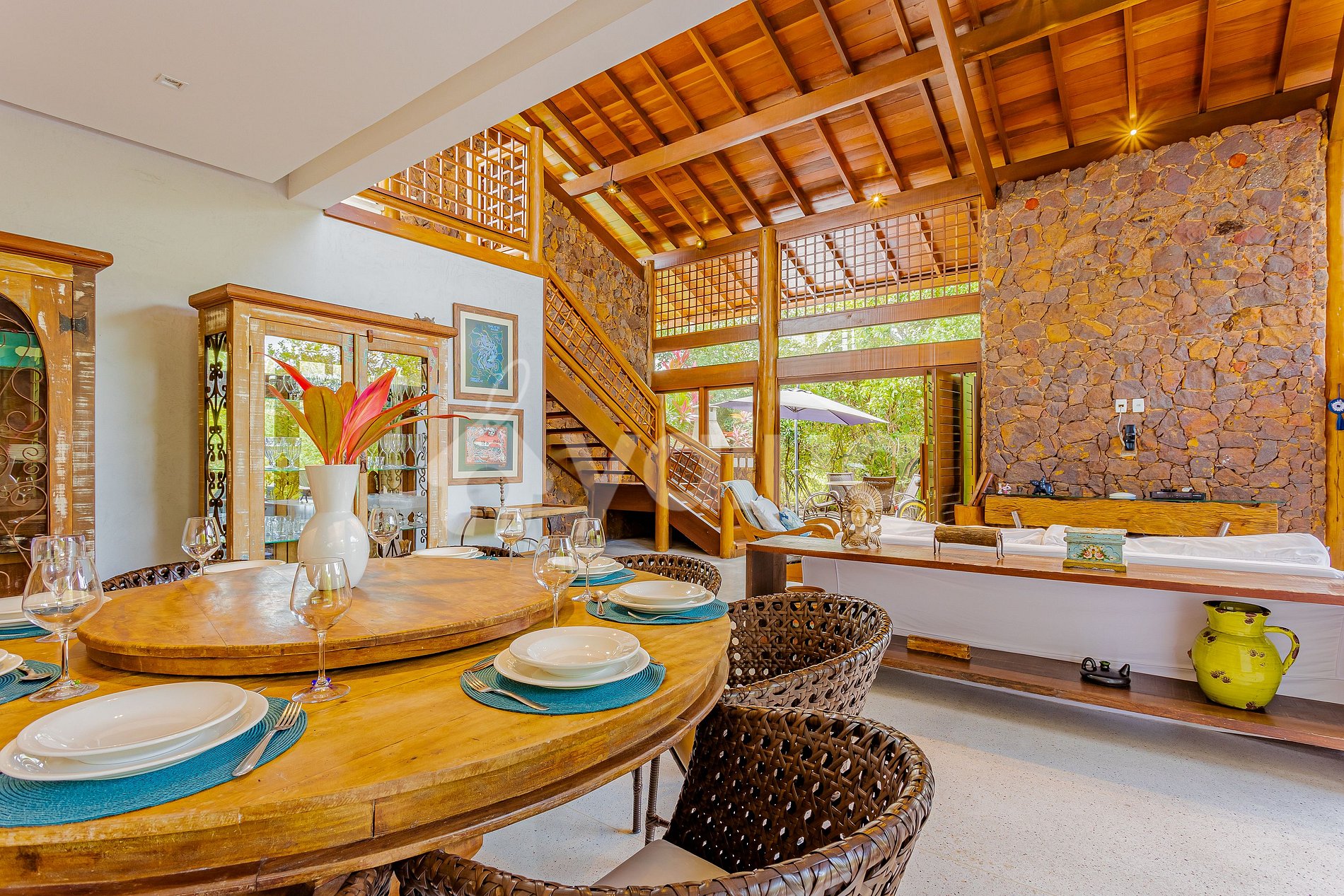 Fully furnished and decorated space! On the ground floor, an open concept, where the living room, kitchen and the entire outdoor area are integrated, which are surrounded by trees. In addition, it has 2 very cozy suites, like the rest of the house! It has another 3 suites on the upper floor, and in the external area a great swimming pool, barbecue and green area.