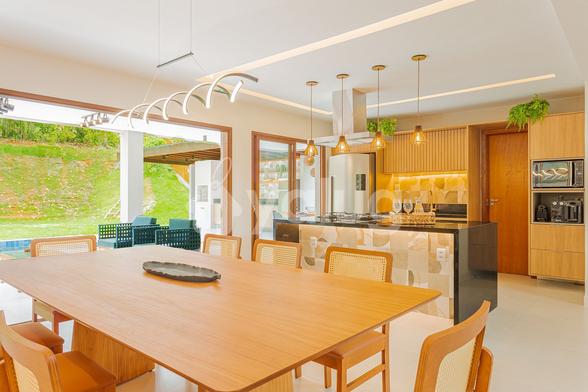 The gourmet area is incredible! It is equipped with a large swimming pool, excellent barbecue, various outdoor furniture and a garden! The living and dining rooms are spacious and beautifully decorated for your reception! In addition, the property has a beautiful kitchen with all the essential items.