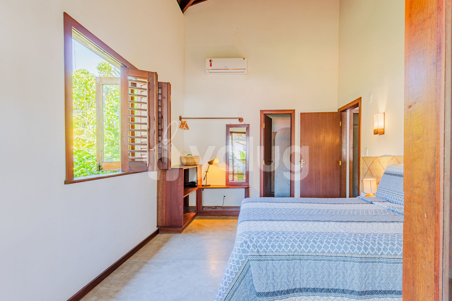Bedroom 1: 1 double bed, split air conditioning, blackout curtains and wardrobe.
