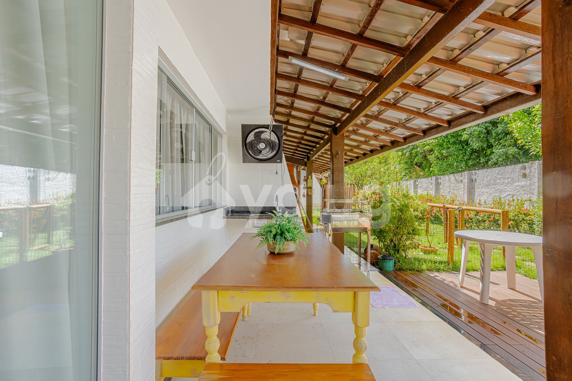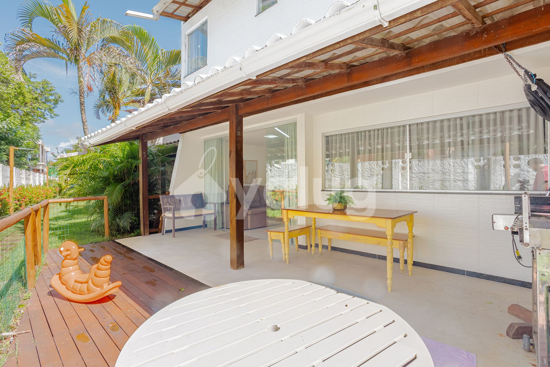 The property has airy and well-lit living and dining rooms, a full kitchen and a gourmet area with a barbecue, various outdoor furniture and a garden!
