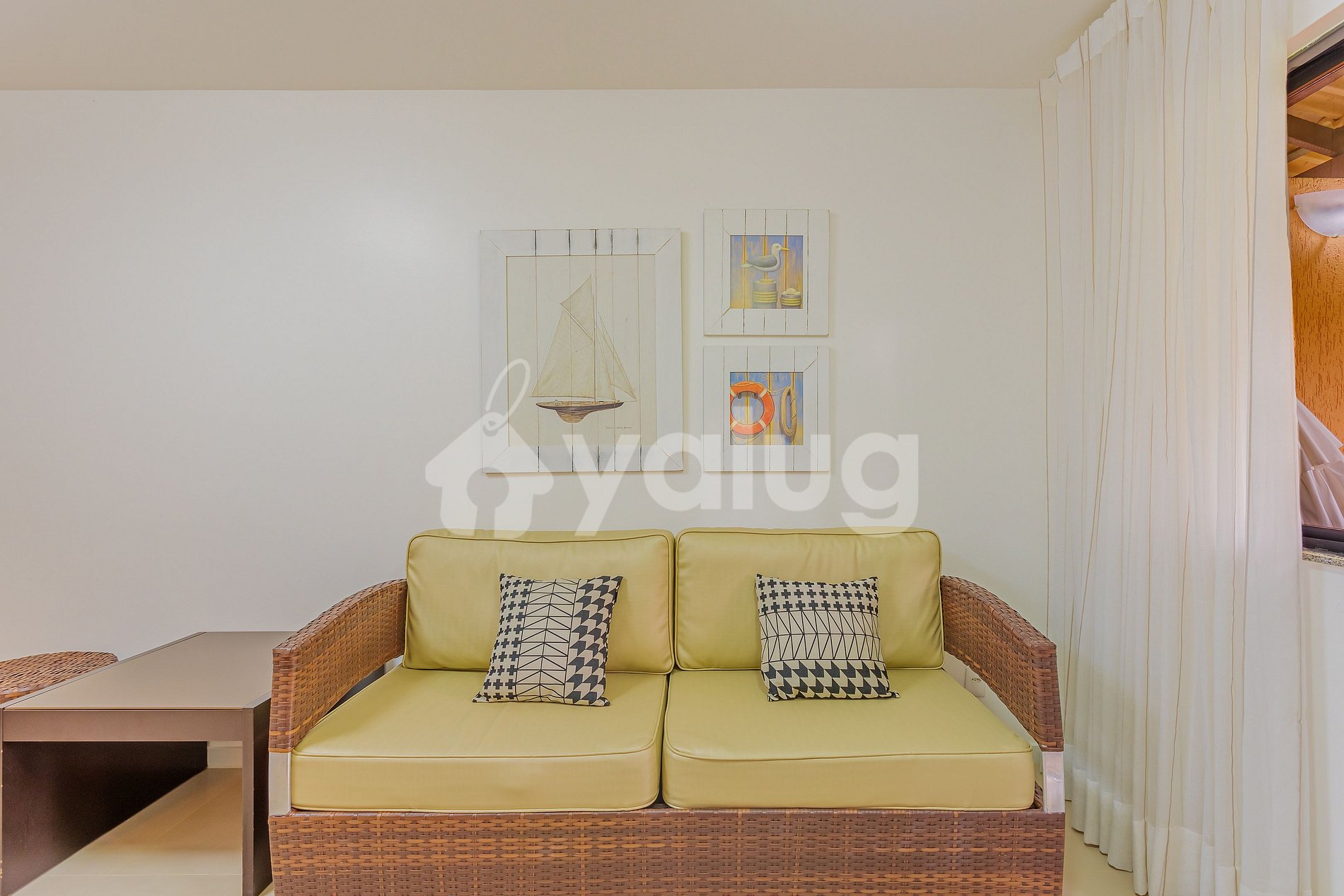 The Condominium has a great structure with 24-hour security, reception, 2 tennis courts, 1 sports court, 1 grass football field, children's playground, jogging track, gym, garden, bar in front of the pool and beach, shop in-house convenience and restaurant, small square, games room, plumber, electrician and housekeeping services (just clean the apartment and make the beds daily), included.