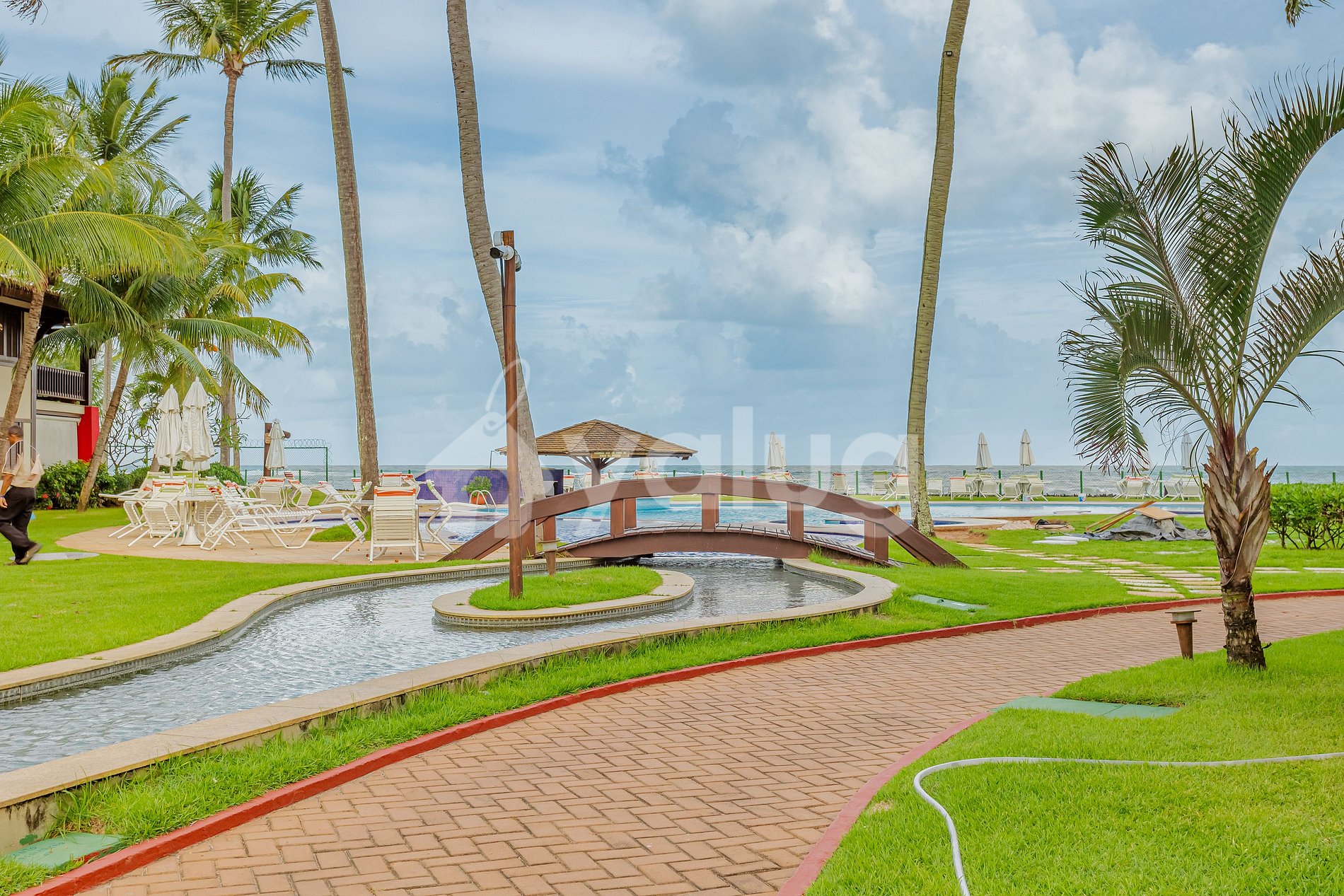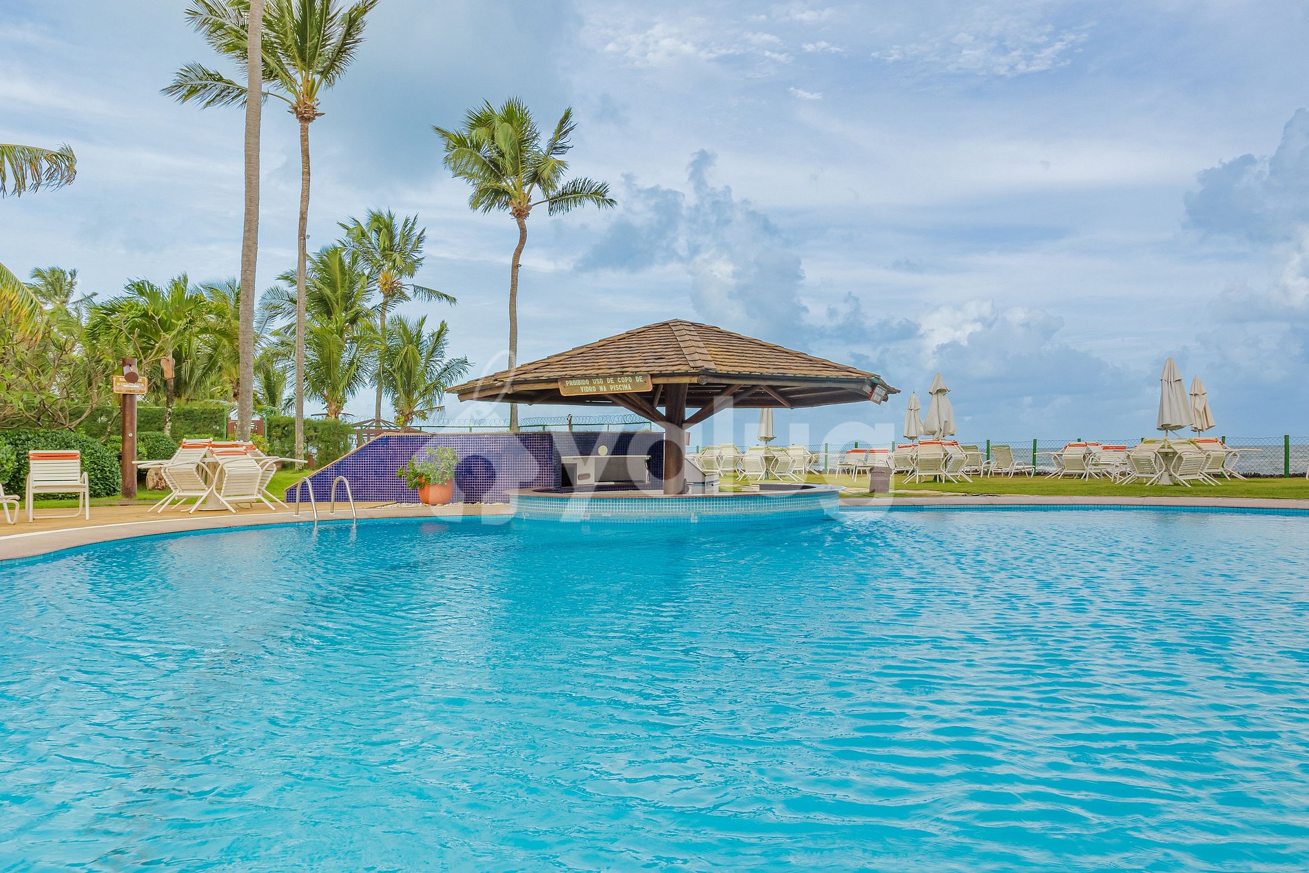 Besides offering direct beach access, the condominium boasts an excellent living area with outdoor furniture, a large pool, and a green area!