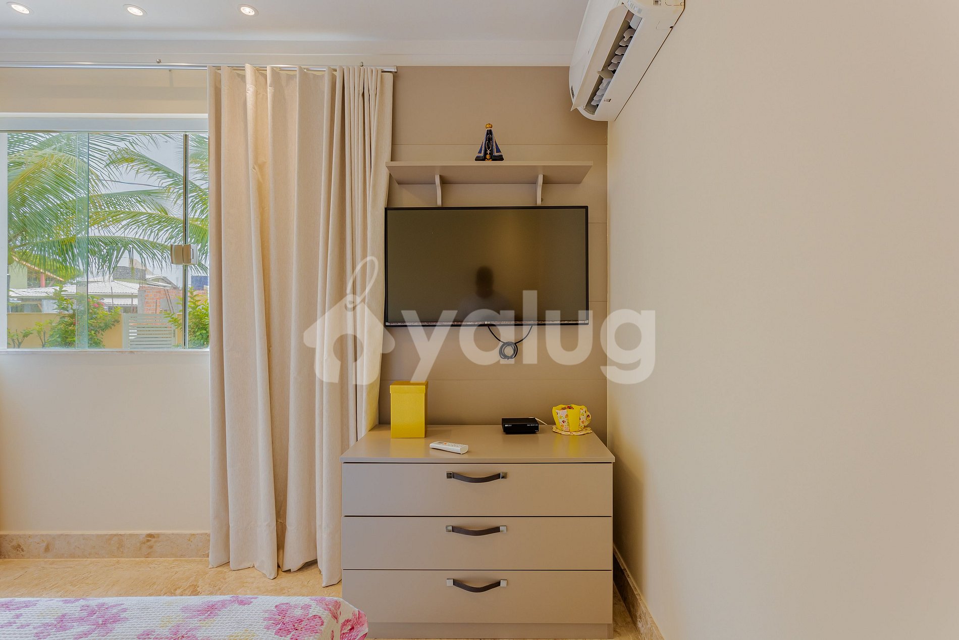 Suite 2 (superior): 1 queen bed, 1 double mattress, split air conditioning, blackout curtains, closet and smart TV;
