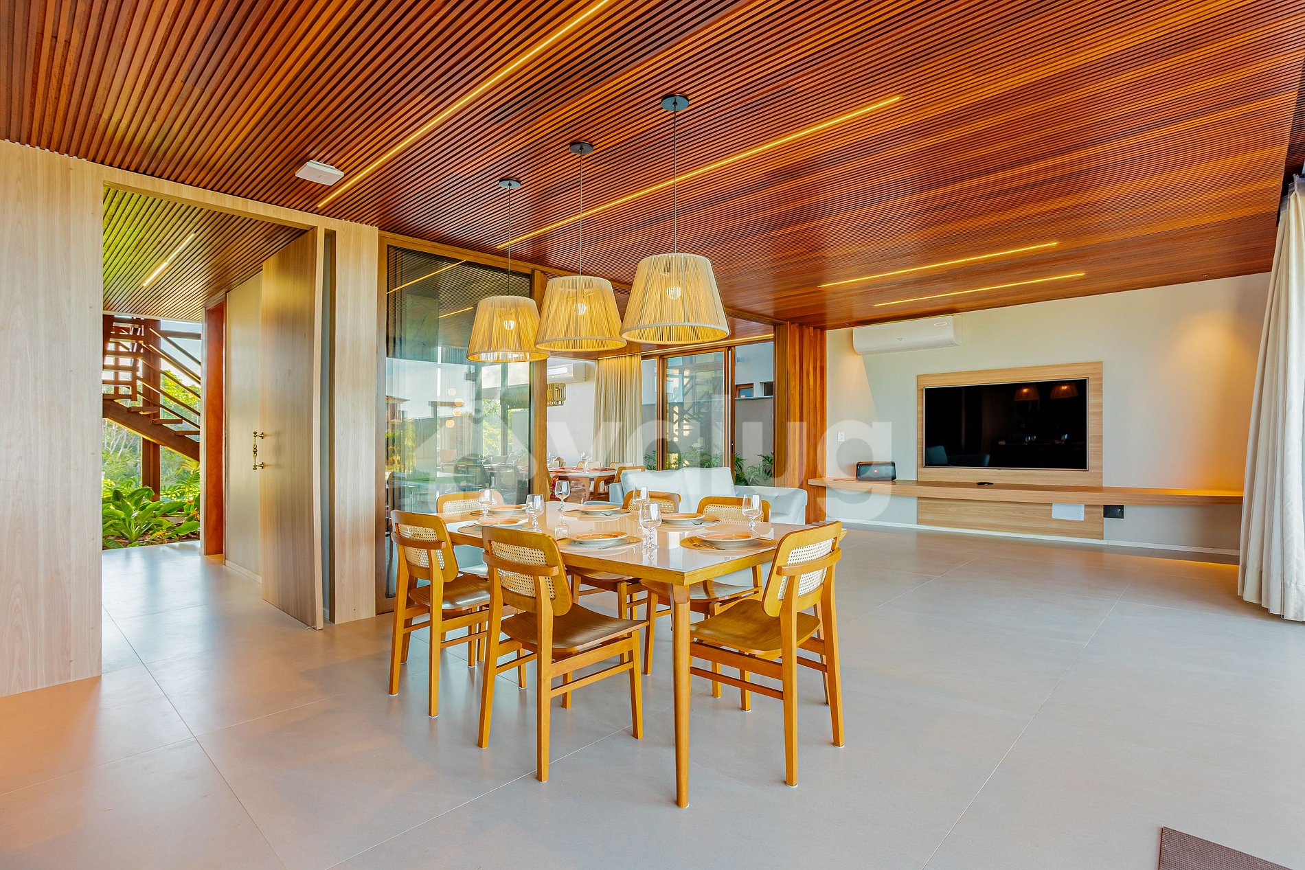 The house, just 400 meters from the beach, features seven beautiful suites, including one maid's quarters; an airy living and dining room; two full kitchens; and, best of all, a gourmet area with a beautiful pool, outdoor furniture, and a garden!