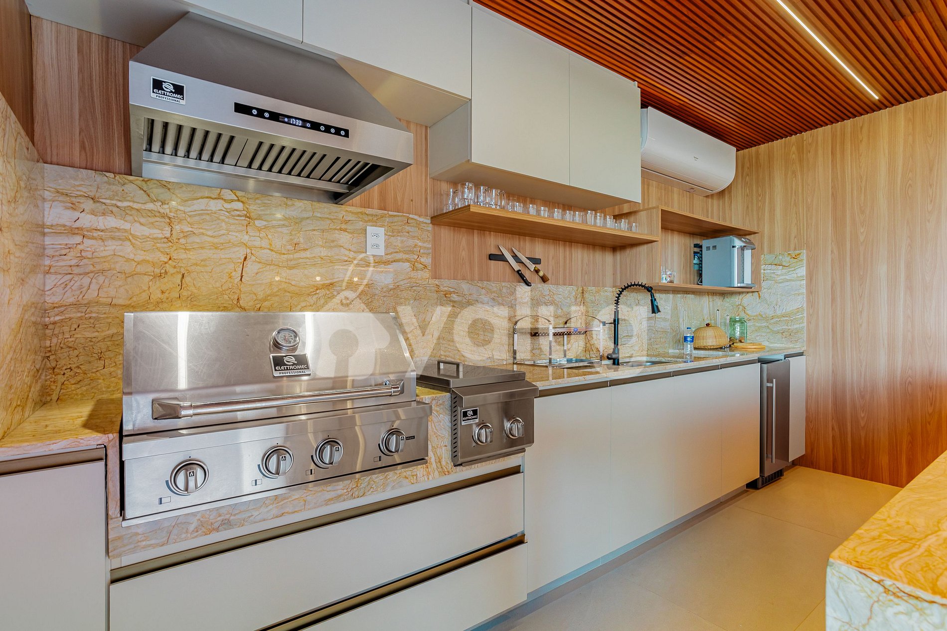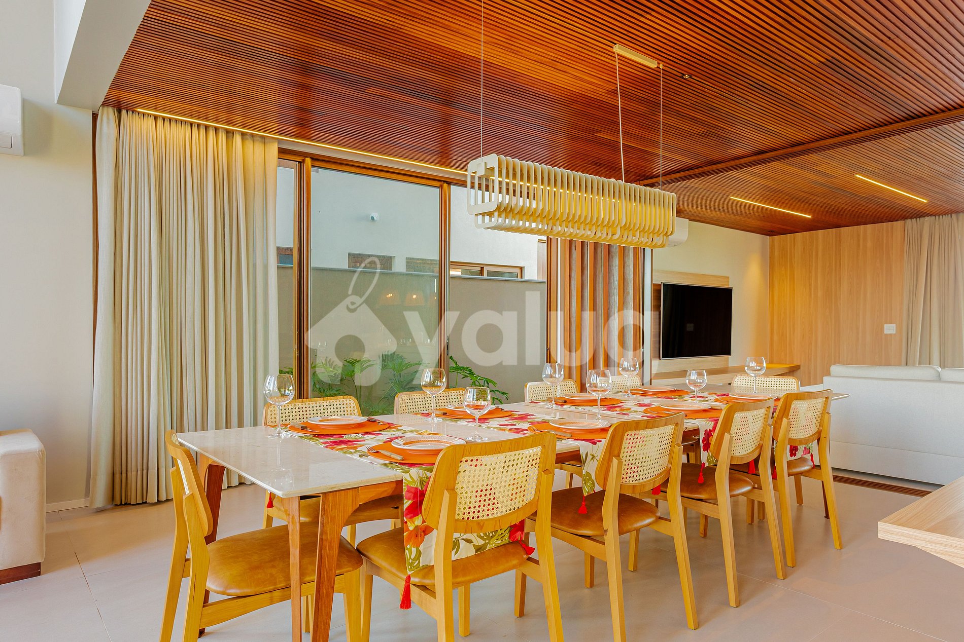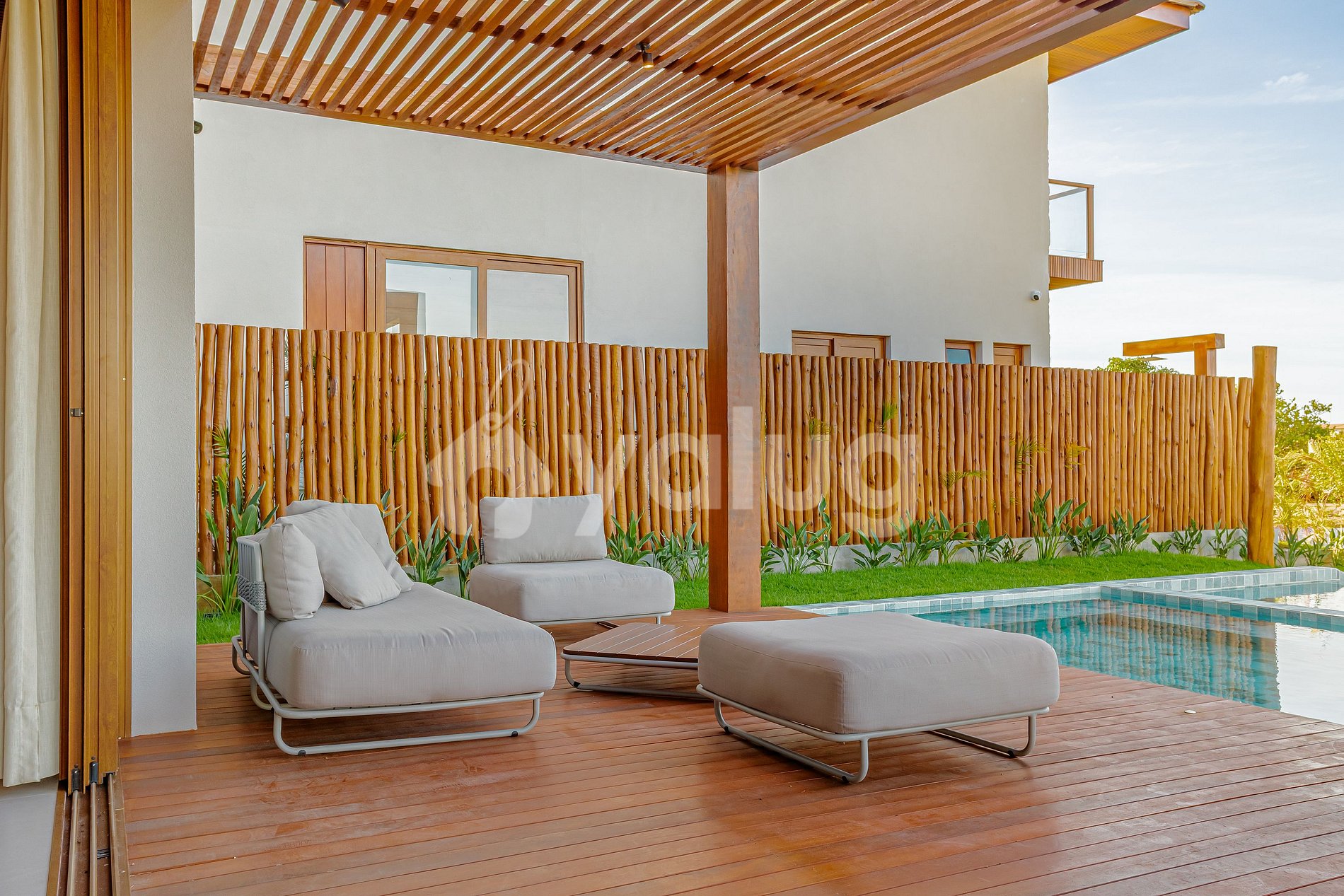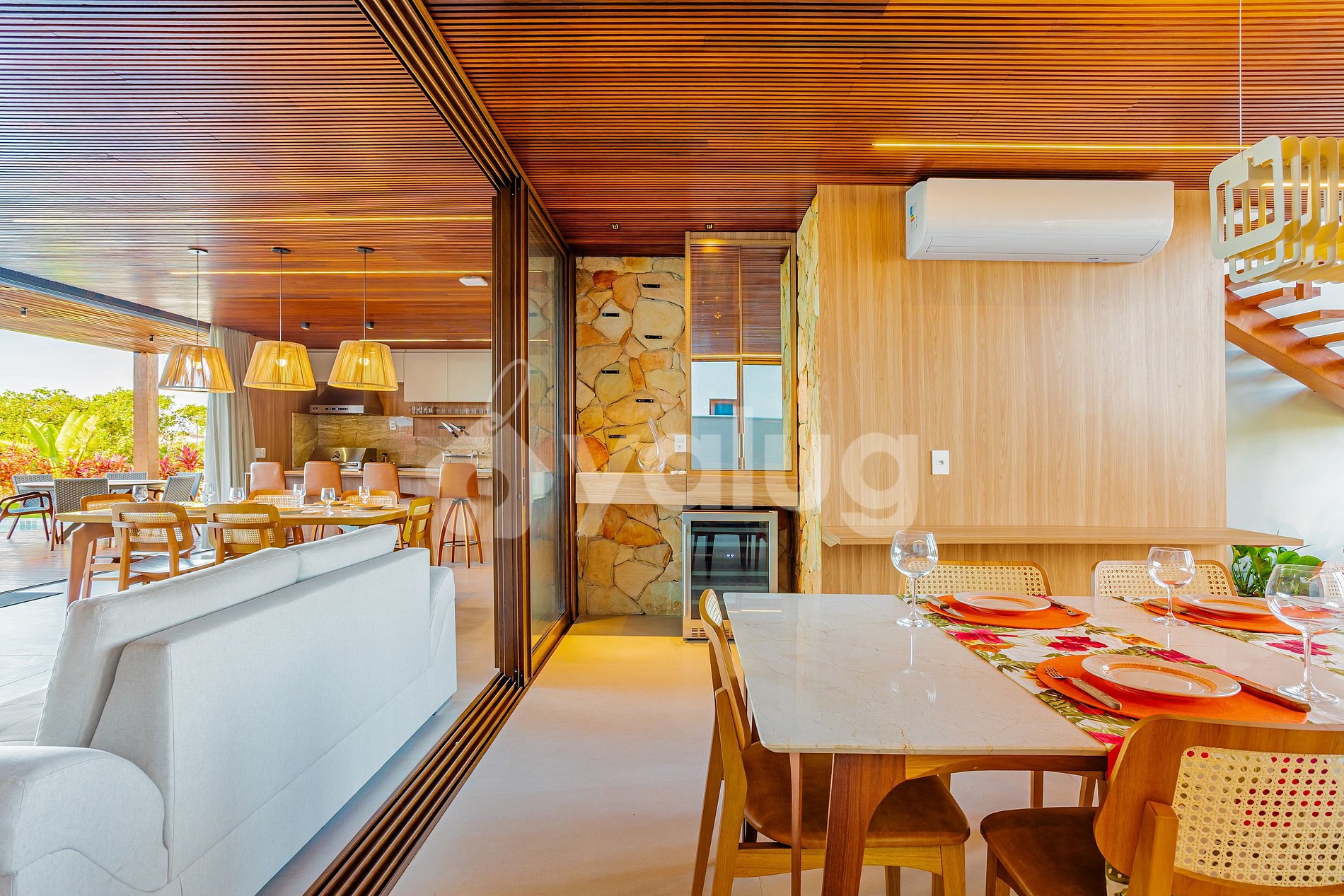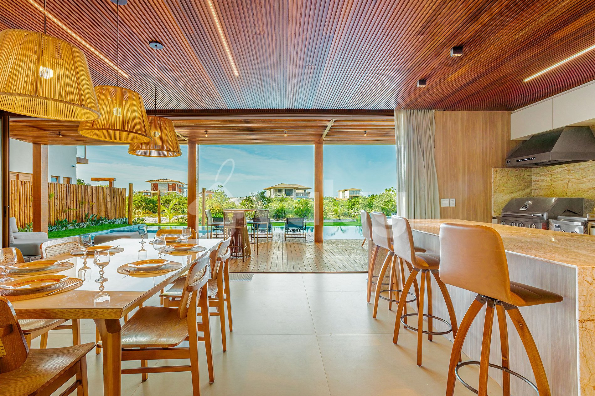 The house, just 400 meters from the beach, features seven beautiful suites, including one maid's quarters; an airy living and dining room; two full kitchens; and, best of all, a gourmet area with a beautiful pool, outdoor furniture, and a garden!