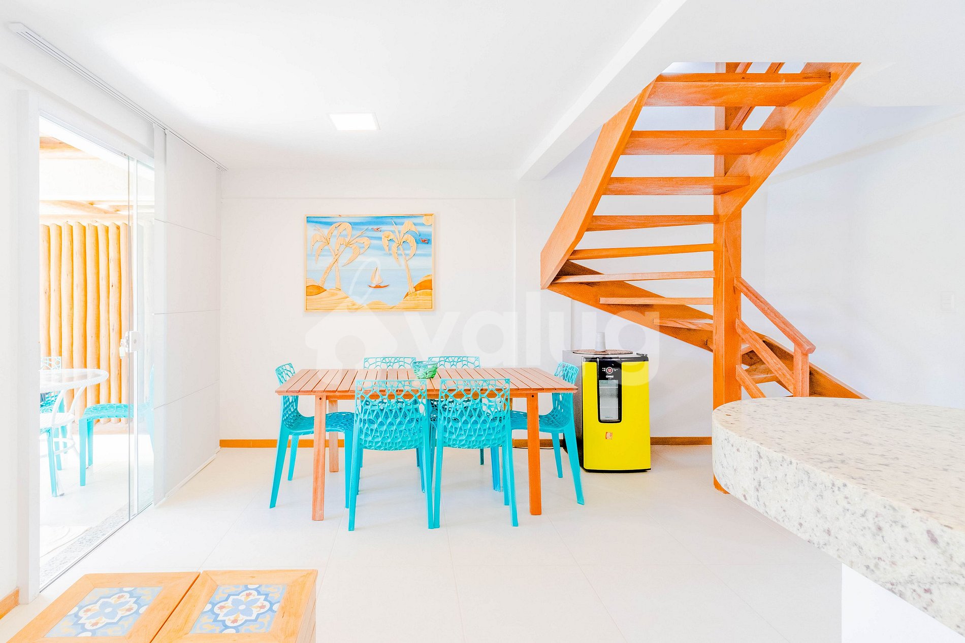 The space comprises 3 floors (ground floor, 1st and 2nd) and has 4 suites located on the upper floors. It also has a living room with cable TV, wine cellar, full kitchen, gourmet area with barbecue and terrace!