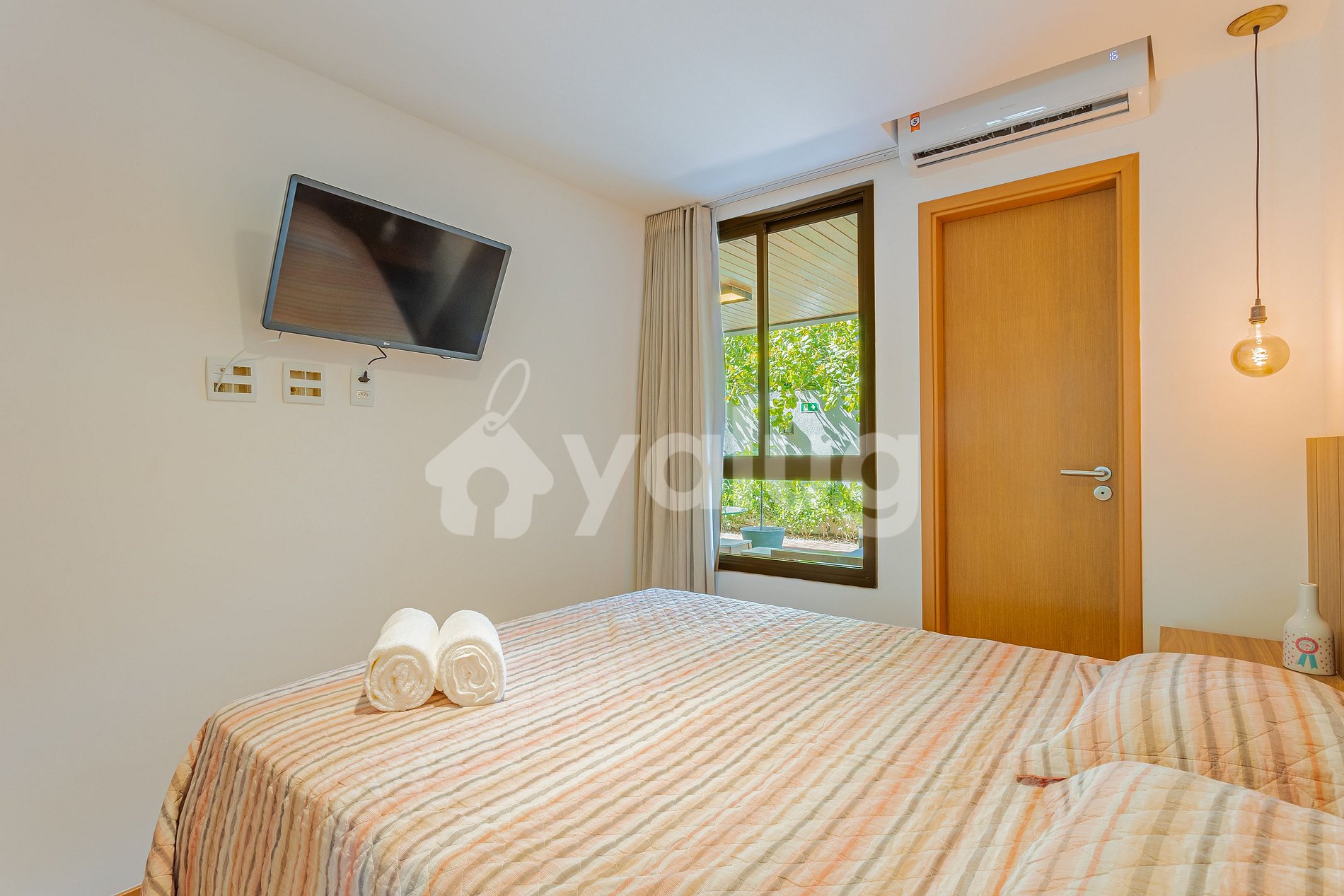 En el pueblo hay 2 suites con aire acondicionado, un salón integrado con la cocina y un balcón. ¡Todos los ambientes son acogedores y decorados para brindar una excelente estadía!
