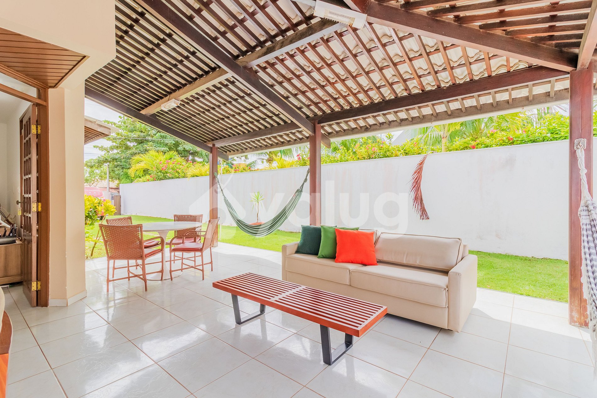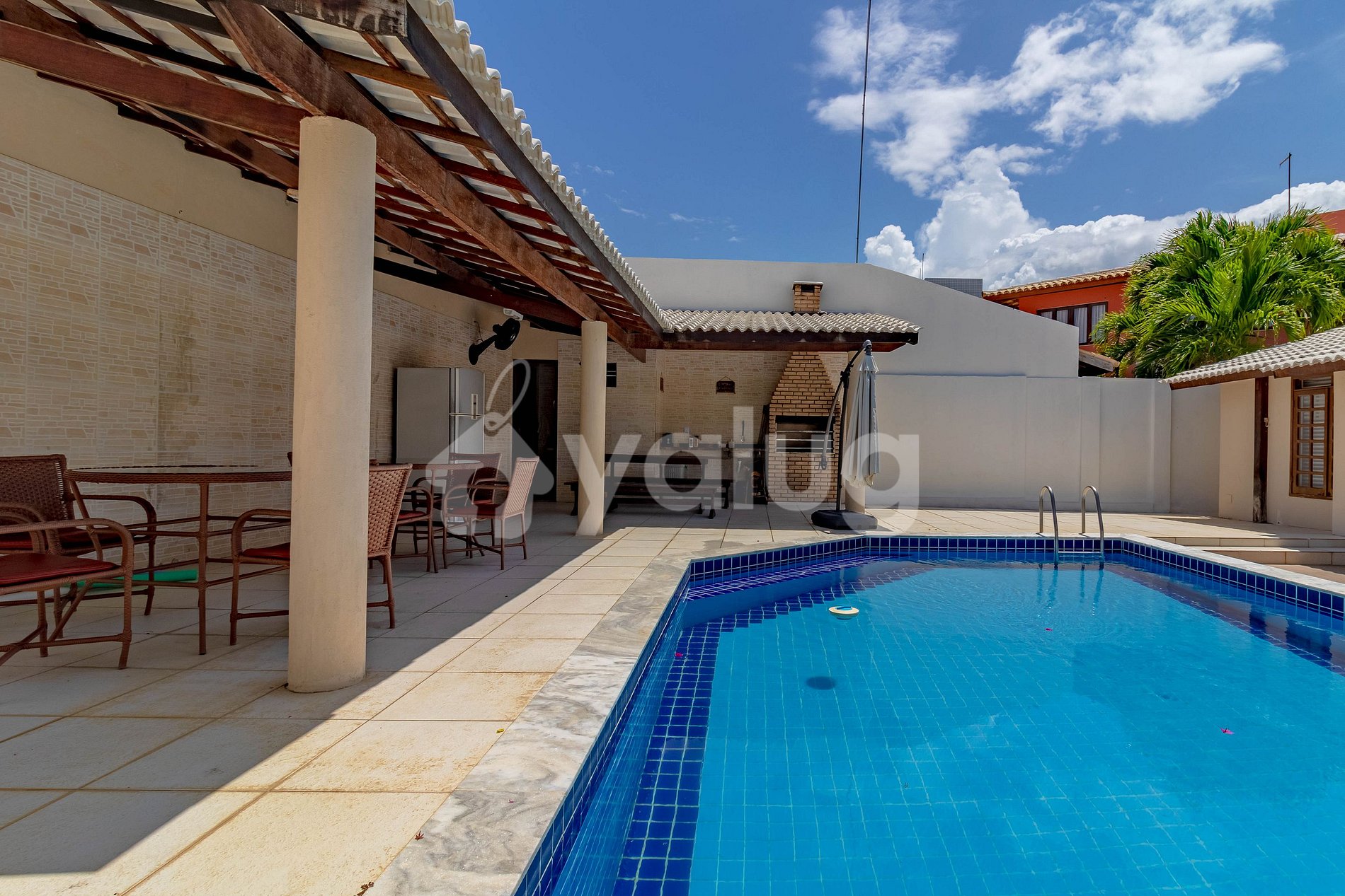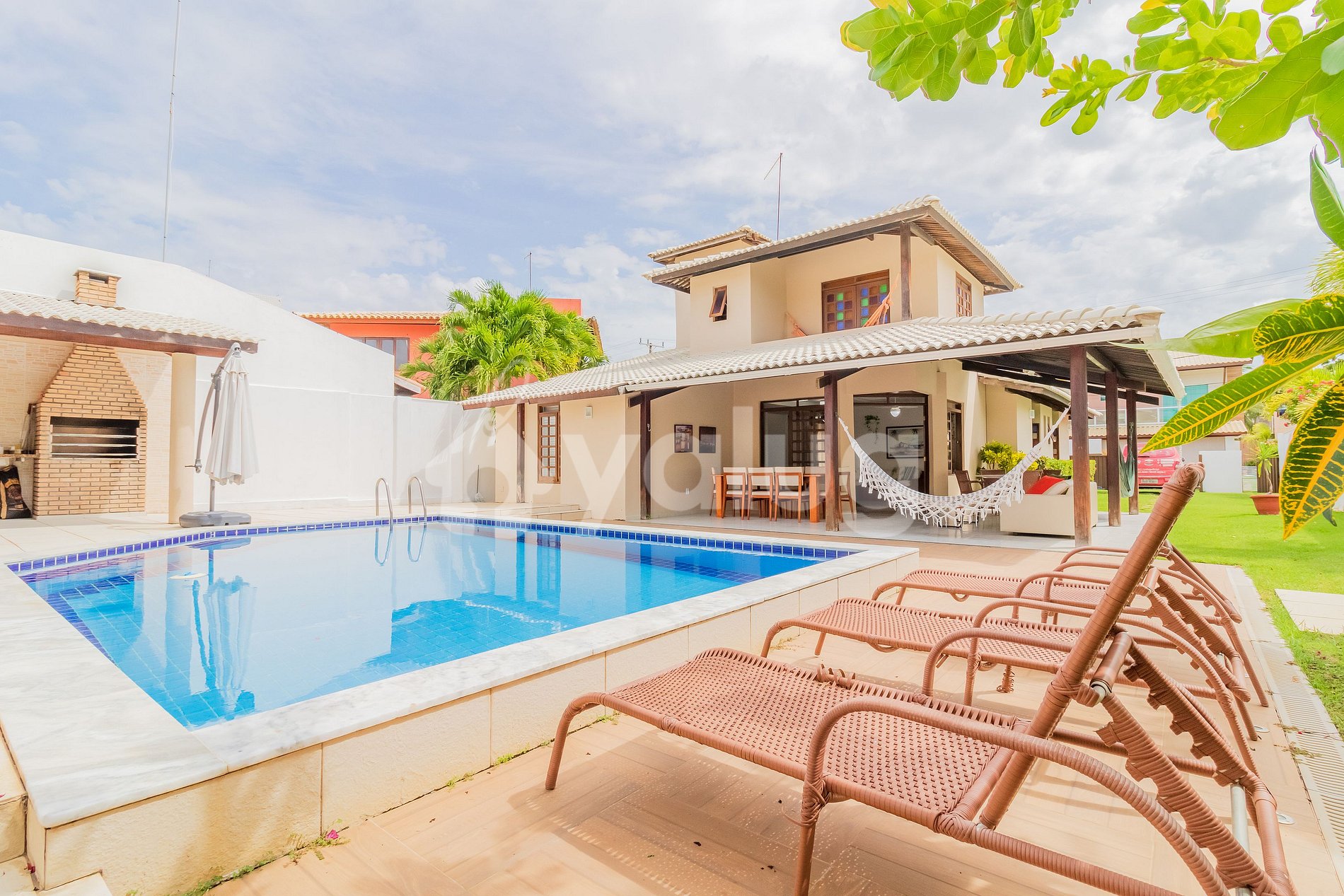 Ubicado en Condomínio Paraíso, con seguridad las 24 horas, mi propiedad cuenta con sala de estar con Smart TV, Wi-Fi, cocina totalmente integrada, 5 habitaciones (3 suites), 4 en la planta baja y 1 en la planta superior, todas con aire acondicionado acondicionado. Además, dispone de una gran zona exterior de ocio, con asientos y hamaca en el porche, piscina y barbacoa.