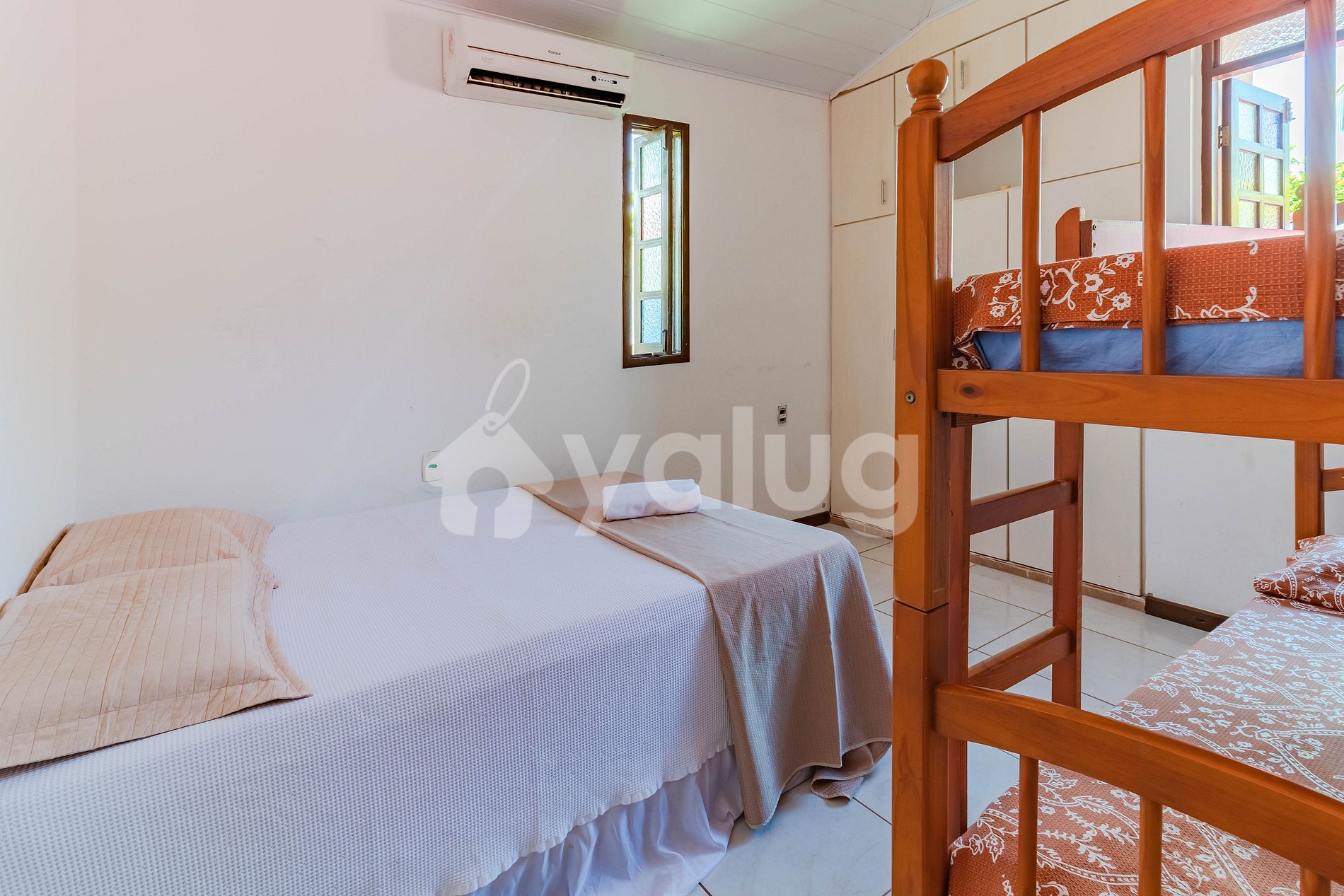 Dormitorio 1 (Planta Baja): 1 cama doble, 1 litera y aire acondicionado tipo split.