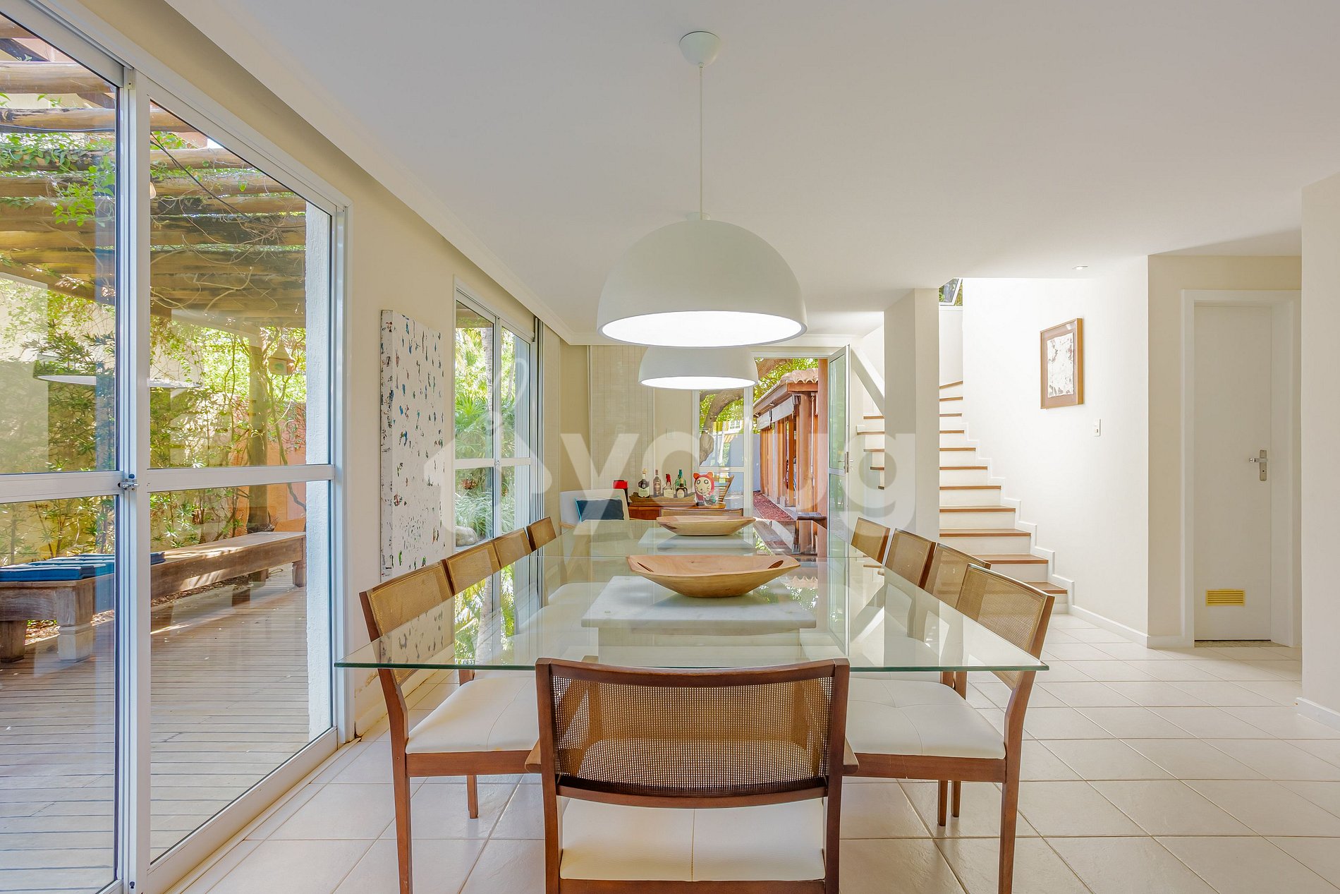 La casa ofrece sala de estar, 5 suites con aire acondicionado, cocina equipada y una acogedora zona gourmet con barbacoa y piscina. Además, cuenta con una bodega ubicada en la parte trasera de la propiedad.