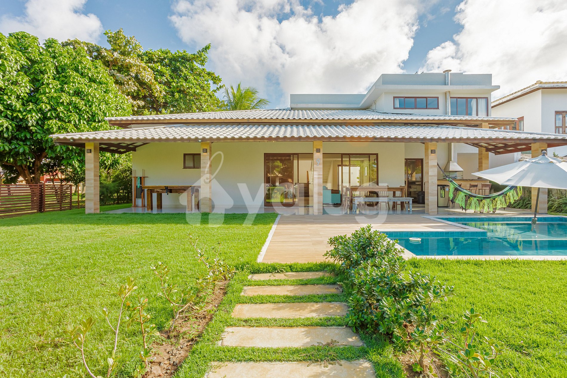 La propiedad ubicada en Condomínio Paraíso, ofrece una excelente estructura con todas las comodidades para su mejor temporada en Guarajuba. La casa tiene capacidad para 14 personas y cuenta con 4 suites con aire acondicionado, sala de estar con smart TV, cocina completa y Wi-Fi.