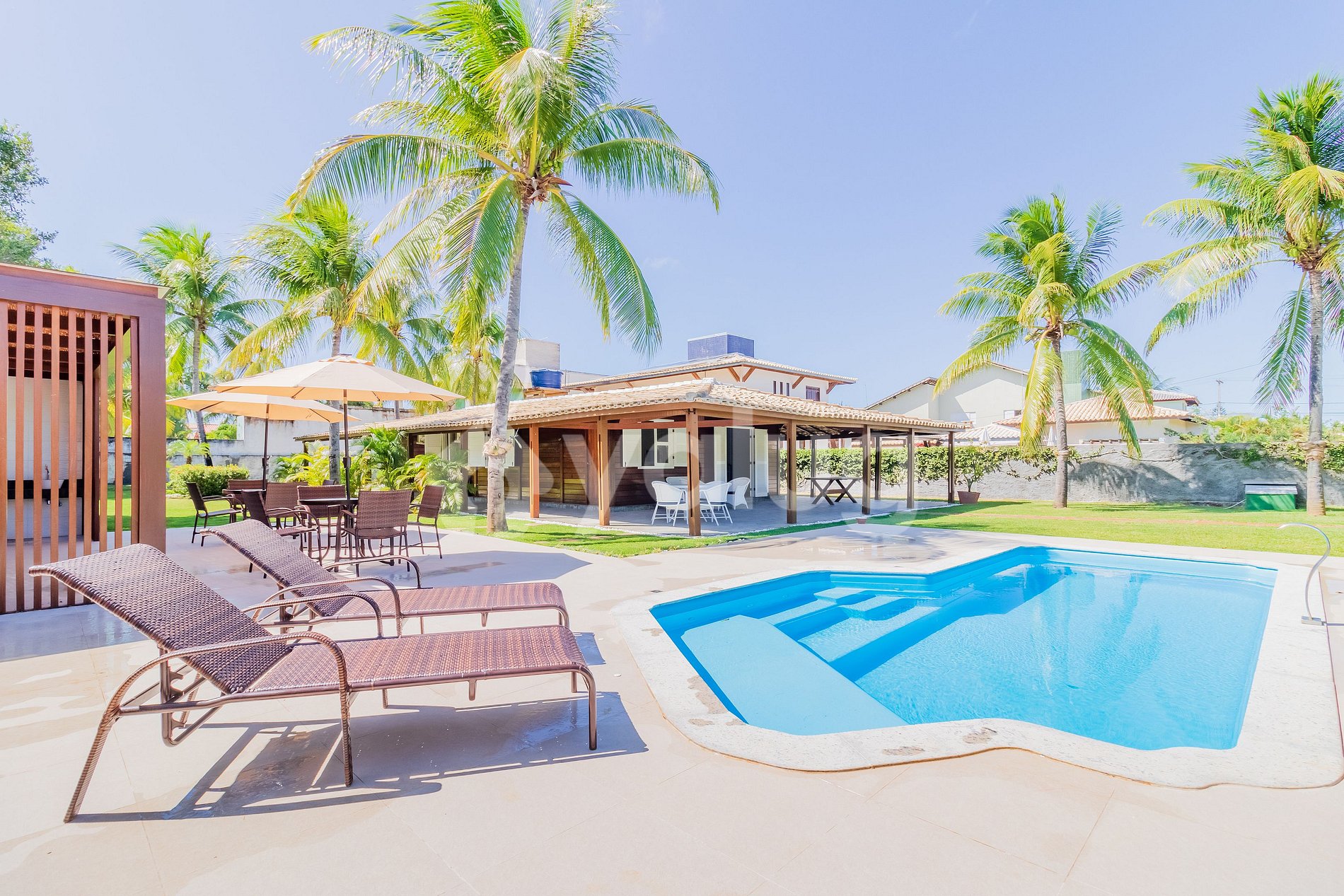 A casa fica em um terreno grande, com muito gramado e excelente área de lazer e piscina. O acesso à excelente praia fica a alguns minutinhos de caminhada pelo condomínio. Foi uma ótima estadia!