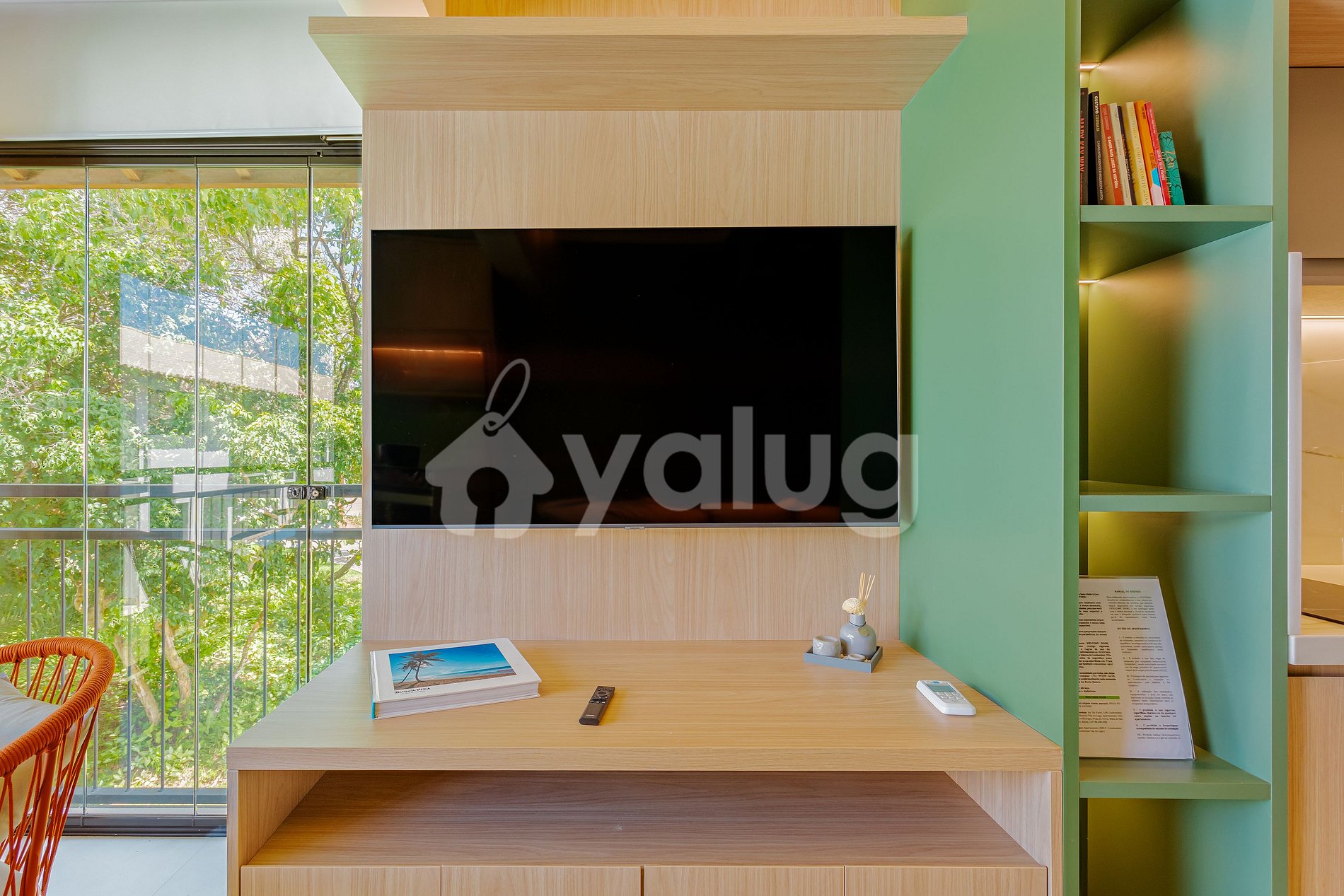 Ubicado en el Condominio Residencial Vila do Lago, el espacio cuenta con 2 dormitorios (1 suite) con aire acondicionado, sala de estar climatizada y cocina completa.