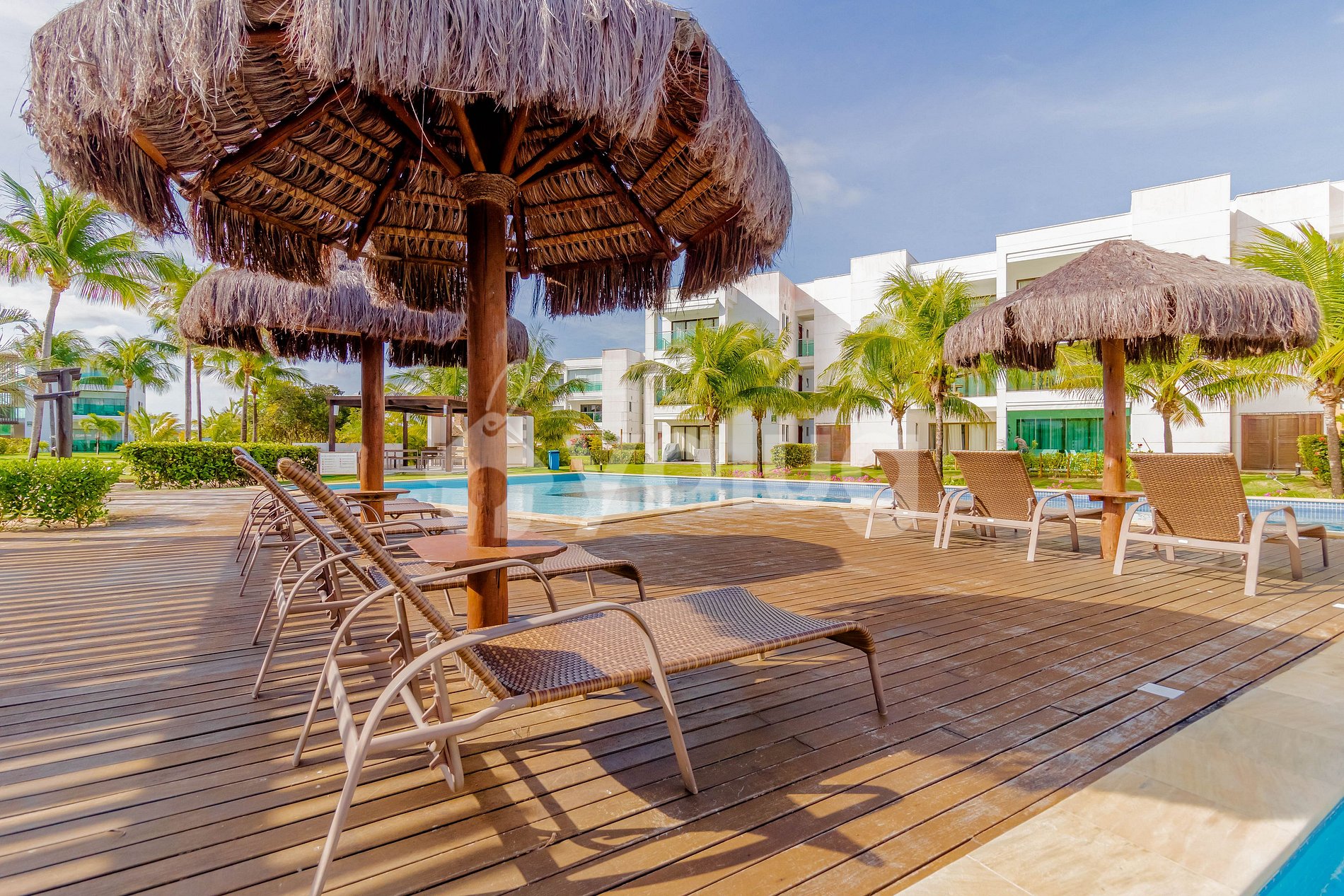 A 400m de la playa, con acceso exclusivo, el Condominio cuenta con piscinas para adultos y niños, gimnasio climatizado, parque infantil, cancha deportiva, club de playa con restaurante-bar, camastros, sillas y servicio de sombrillas. Camino exclusivo a través del Parque Klaus Peters hasta el pueblo de Praia do Forte.