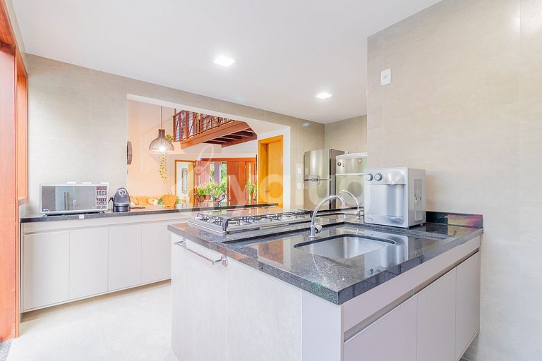 A casa tem excelente estrutura para acolher os hóspedes, a cozinha tem todos os equipamentos necessários (Air freyr, Nexpresso, sanduicheira, espremedor de suco semi industrial, panelas grandes, tábuas de madeira para frios, etc...não senti falta de nada), churrasqueira com carrinho de suporte equipado, além de facilidades do condomínio que fornece gelo e Van para deslocamento até a vila da PF(funcionou perfeitamente). Os quartos/suítes são espaçosos e proporcionaram boas noites de sono para todos. Rafael dá rápidos retornos às mensagens. Os anfitriões/proprietários nos encantaram com o acolhimento da entrada à saída, nos impregnando da boa energia que nos transmitiram. O espaço-varanda com piscina, integrada à sala e cozinha, foi o lugar favorito da minha família, que ainda tem ainda a natureza ao fundo que me brindou com as orquídeas que amo. Enfim, foram dias maravilhosos que levaremos como doces recordações, com gostinho de quero mais. Grata.