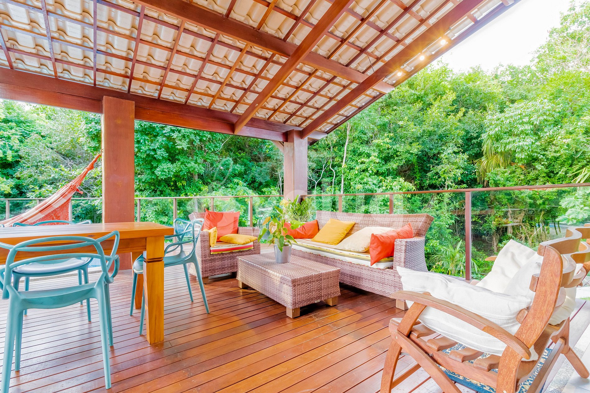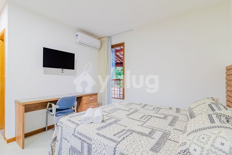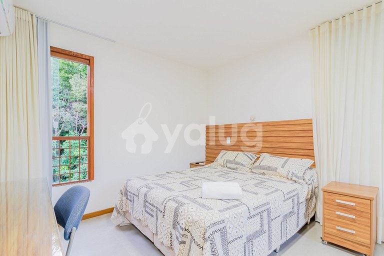 Además de todo lo que ofrece mi espacio, el condominio cuenta con excelente seguridad e infraestructura, dos piscinas, un área deportiva, una cancha de tenis de playa, un área verde (reserva de la Mata Atlántica) y conserjería las 24 horas. También hay servicio de transporte gratuito de viernes a domingo para acceder al complejo y a la playa. Los horarios están sujetos a disponibilidad.