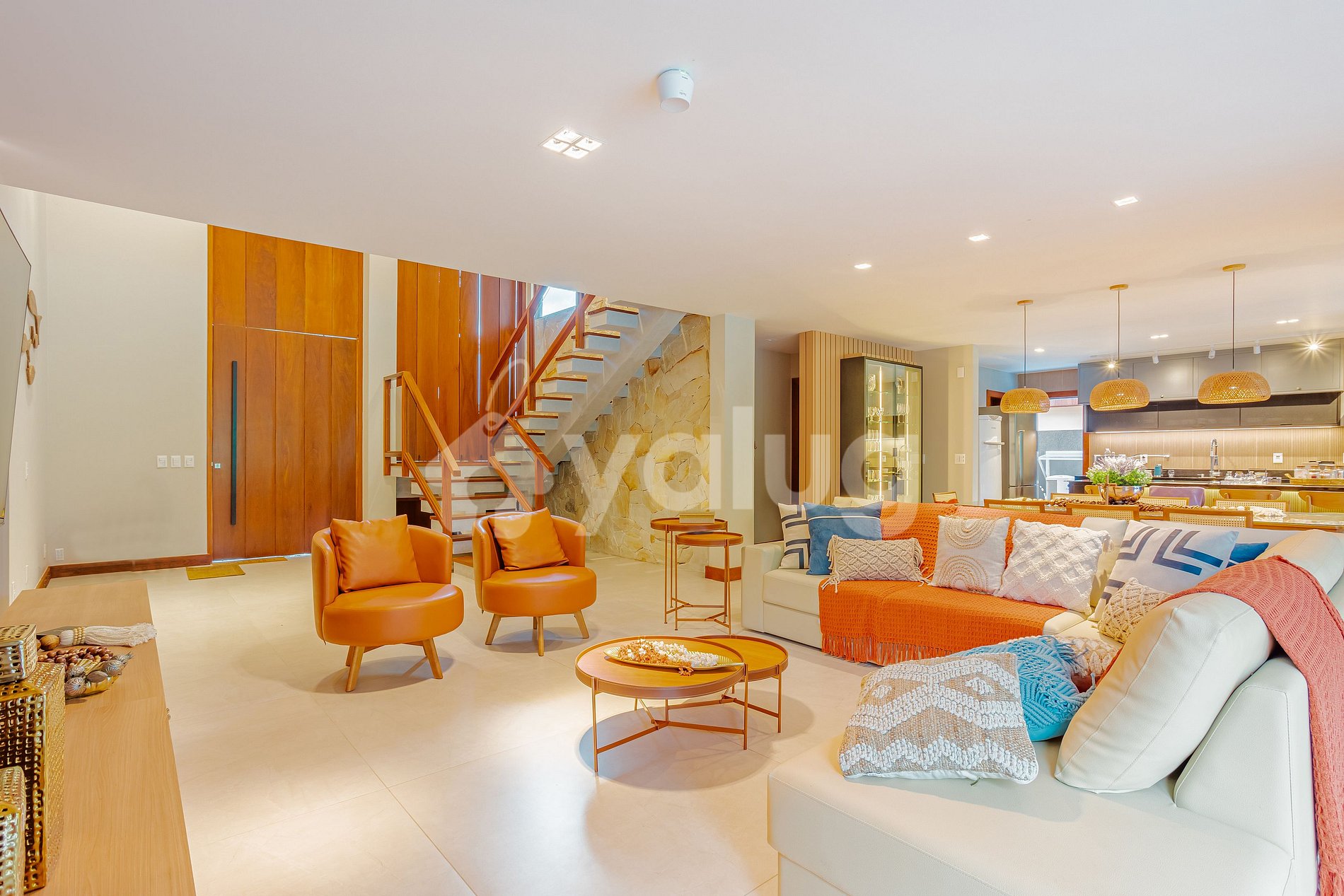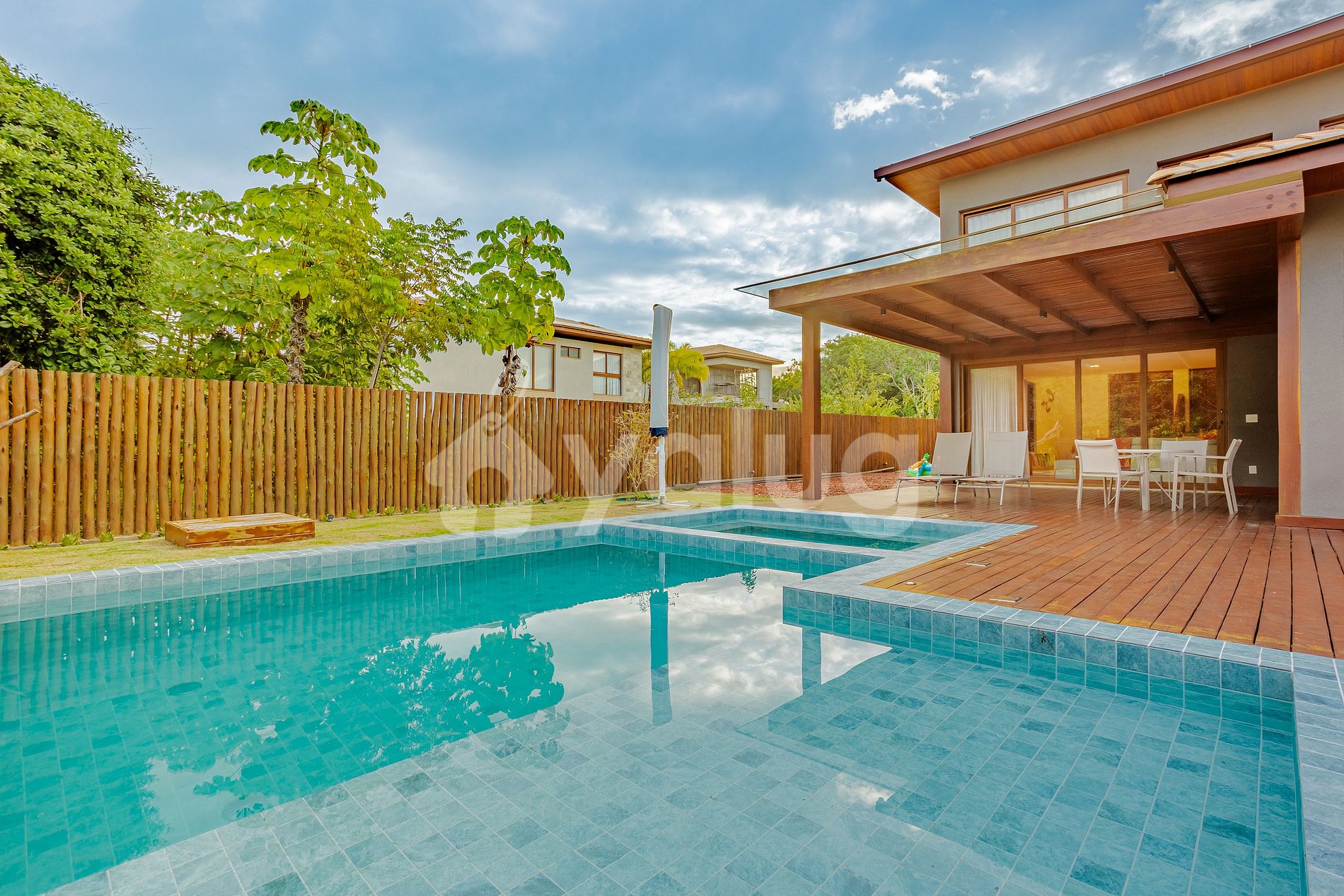 Casa de alto estándar ubicada en el condominio Praia Bella, que ofrece acceso exclusivo a la playa, conserjería las 24 horas y jardín.