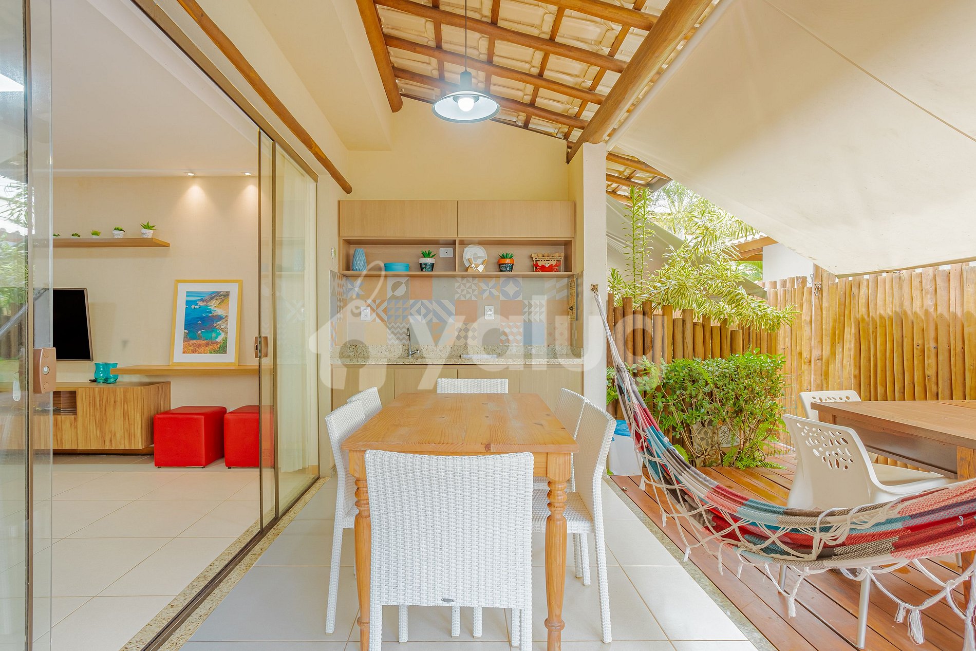 El espacio cuenta con una excelente sala comedor, dos suites amuebladas y sumamente cómodas, cocina completa con todos los elementos necesarios para tu estadía. Área gourmet con hamaca, asador y mucho más para tu ocio.