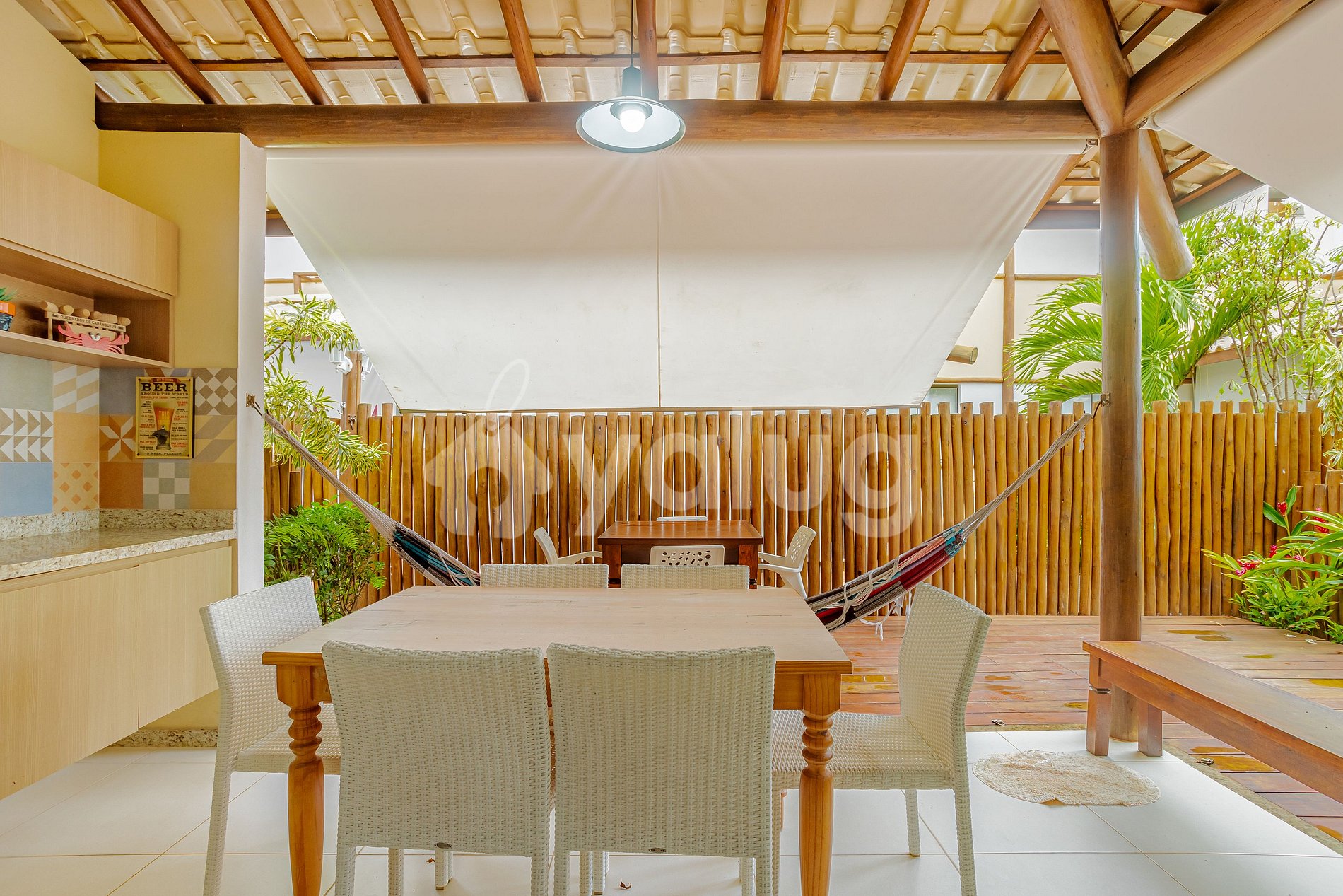 El espacio cuenta con una excelente sala comedor, dos suites amuebladas y sumamente cómodas, cocina completa con todos los elementos necesarios para tu estadía. Área gourmet con hamaca, asador y mucho más para tu ocio.