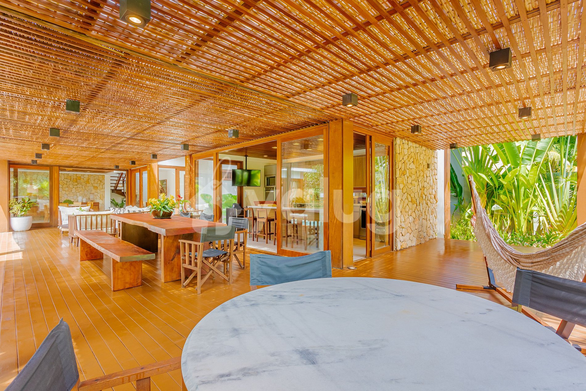 El área gourmet está equipada, con piscina, hamaca y jardín.