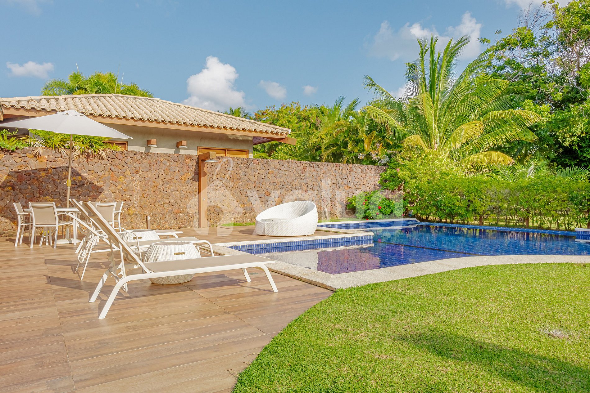 Ubicado en el condominio Aldeia dos Coqueiros, el espacio cuenta con una amplia zona verde, conserjería las 24 horas y está a sólo 200 m de la playa Pedra do Chapéu.