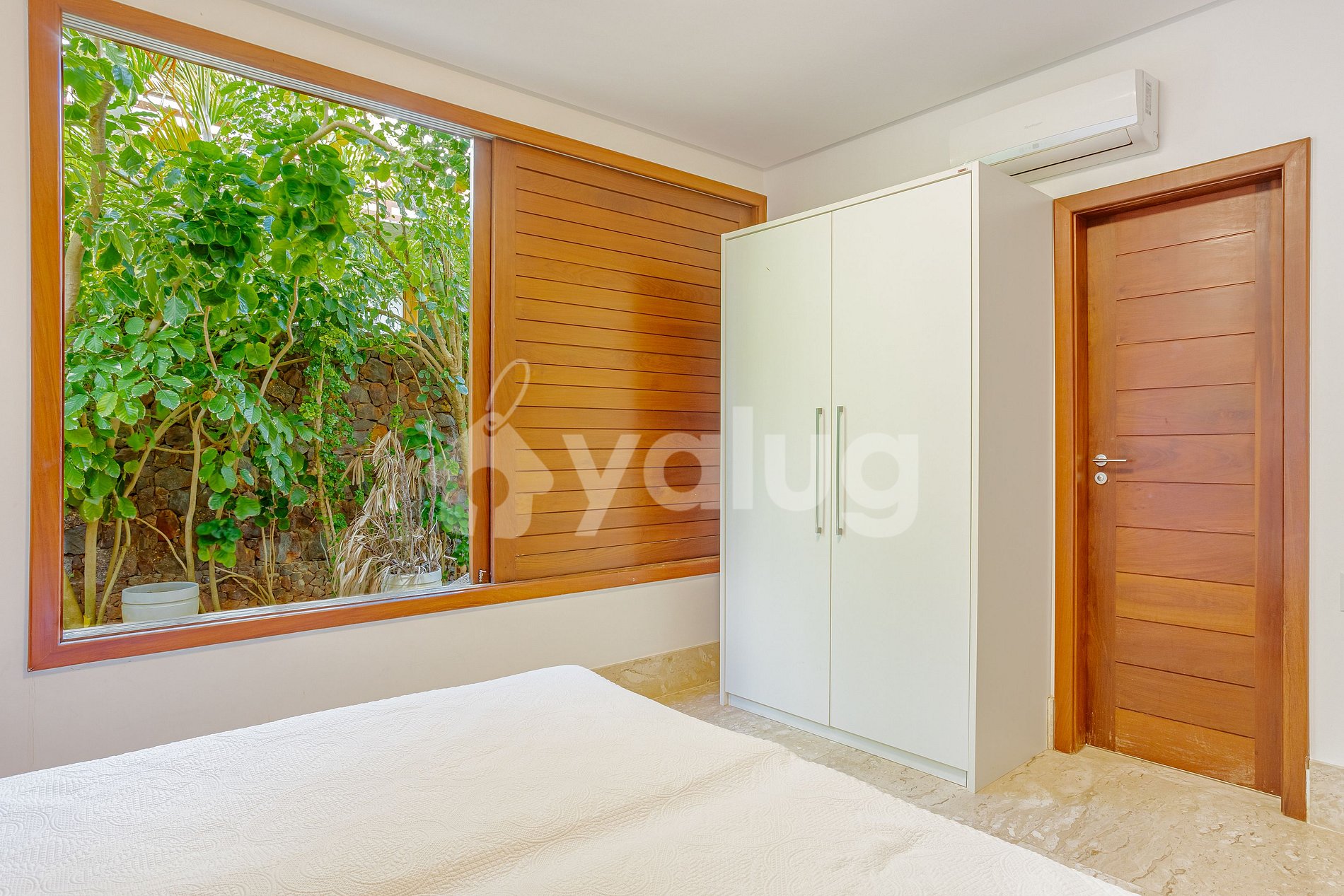 Suite 2 (Planta baja): Aire acondicionado split, cortinas blackout, closets, 1 cama matrimonial con auxiliares a ambos lados.