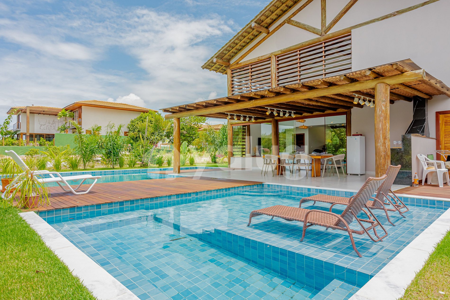 El condominio ofrece acceso directo a la playa, con un carrito de golf que lleva a los huéspedes cerca de ella. Además, el condominio está disponible para alquiler para los huéspedes en la villa de Praia do Forte y, además, es posible solicitar con antelación el servicio de preguiçadeira en la playa, sujeto a disponibilidad al momento de la reserva.