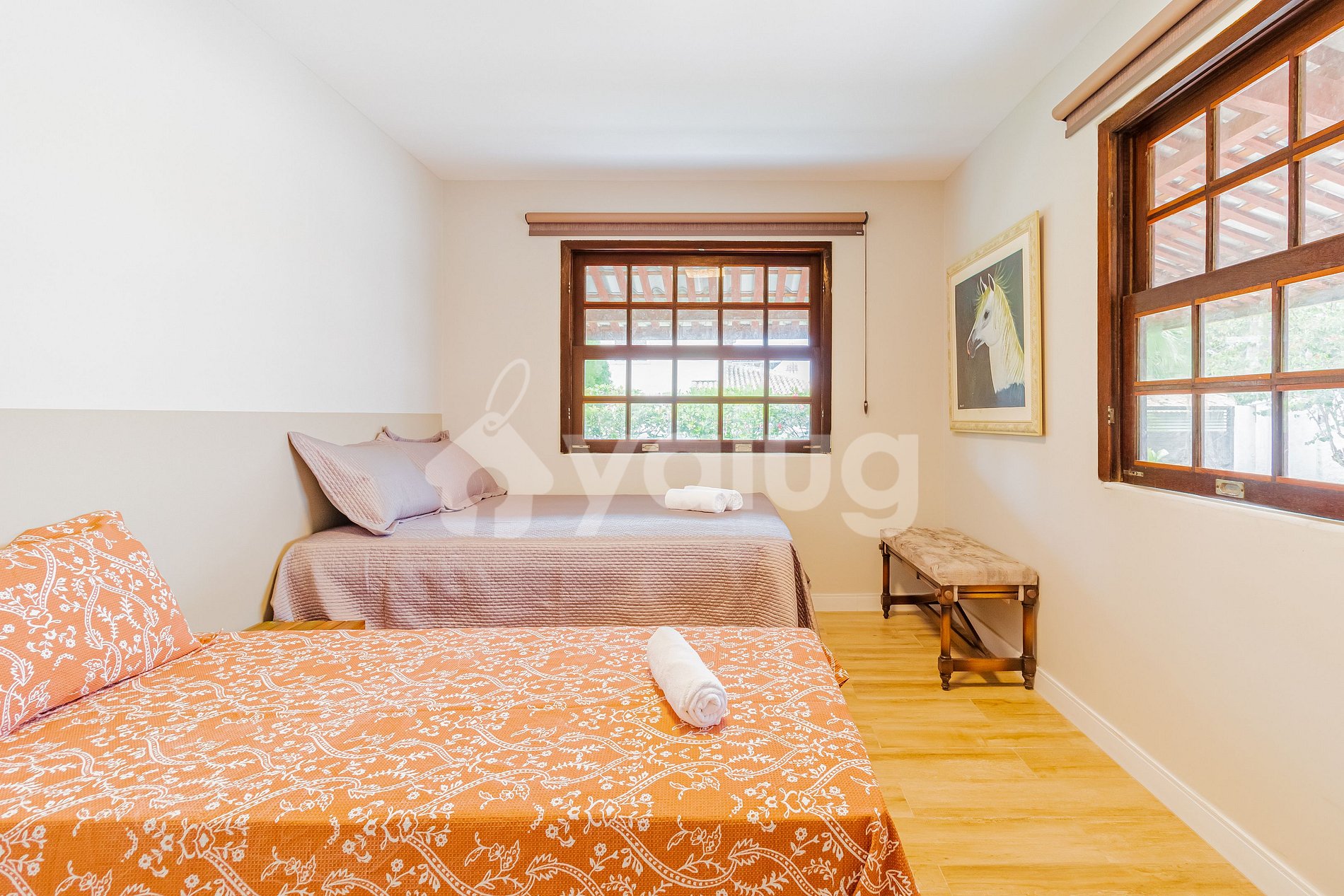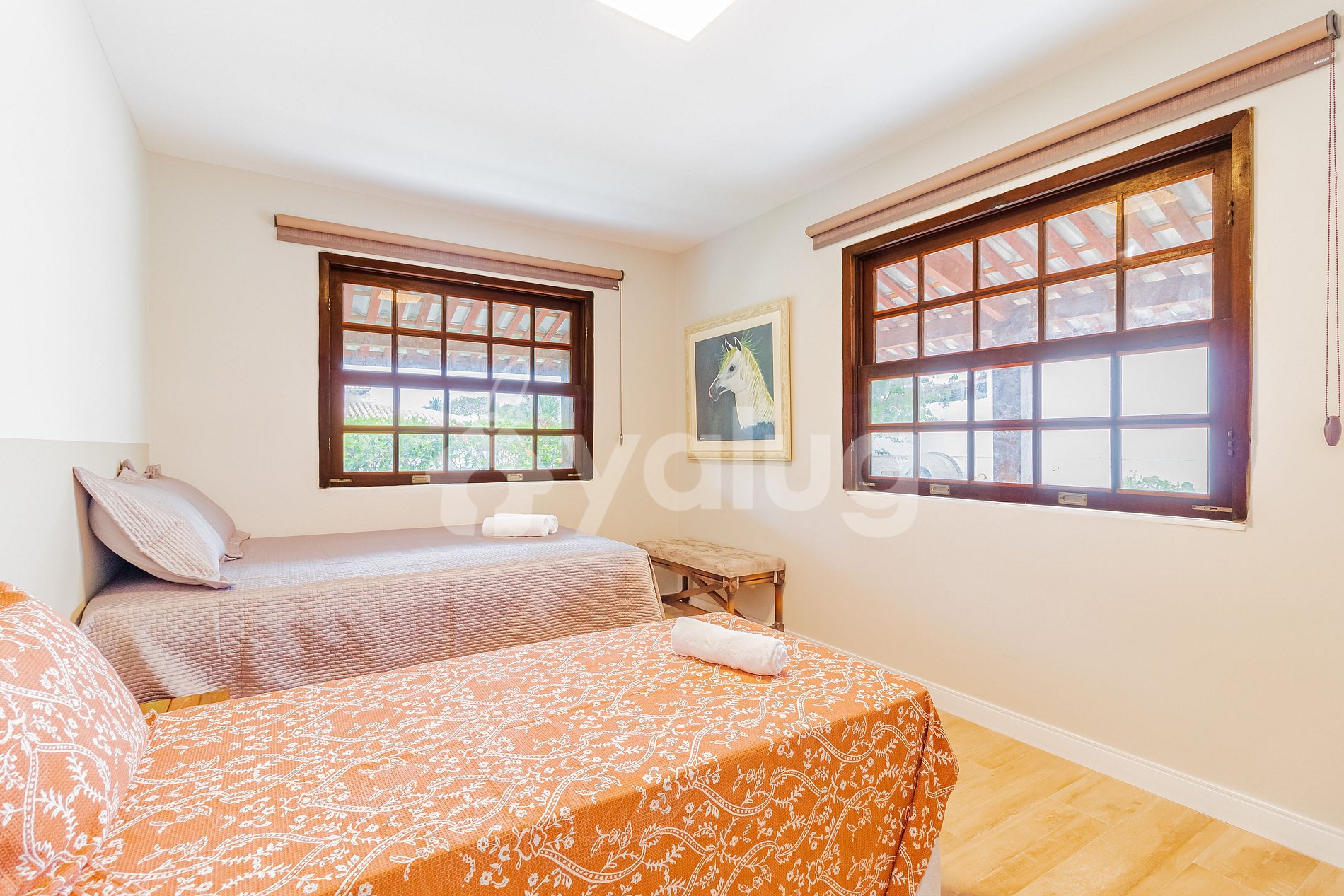 A casa é excelente, são 5 quartos, é praticamente 2 suítes, porém não havia troca da roupa de cama e das toalhas, para o período q reservei de 5 dias, foi complicado, pois no terceiro dia estava tudo sujo e não tinham como trocar, apesar de pedirmos e nos disponibilizarmos a pagar taxa extra, então aconselho levarem toalhas e roupas de cama extra, pois não fornecem esse serviço