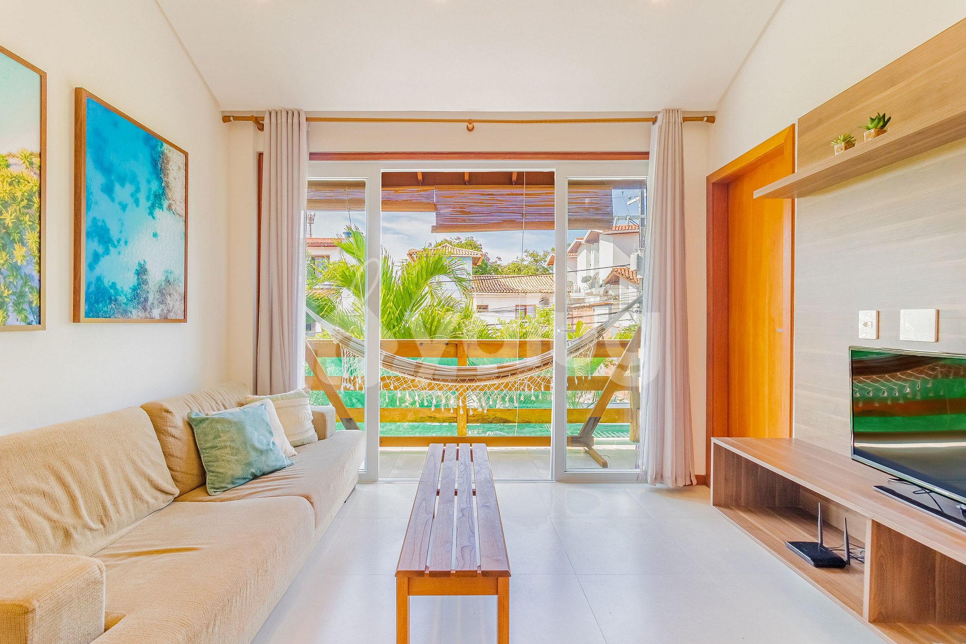 Excelente apartamento con 2 cuartos climatizados, sala de estar, cozinha y varanda, ambos decorados. Tudo isso com o fácil acceso a Vila, onde encontra-se diversos bares, restaurantes e outras atrações, além da praia!