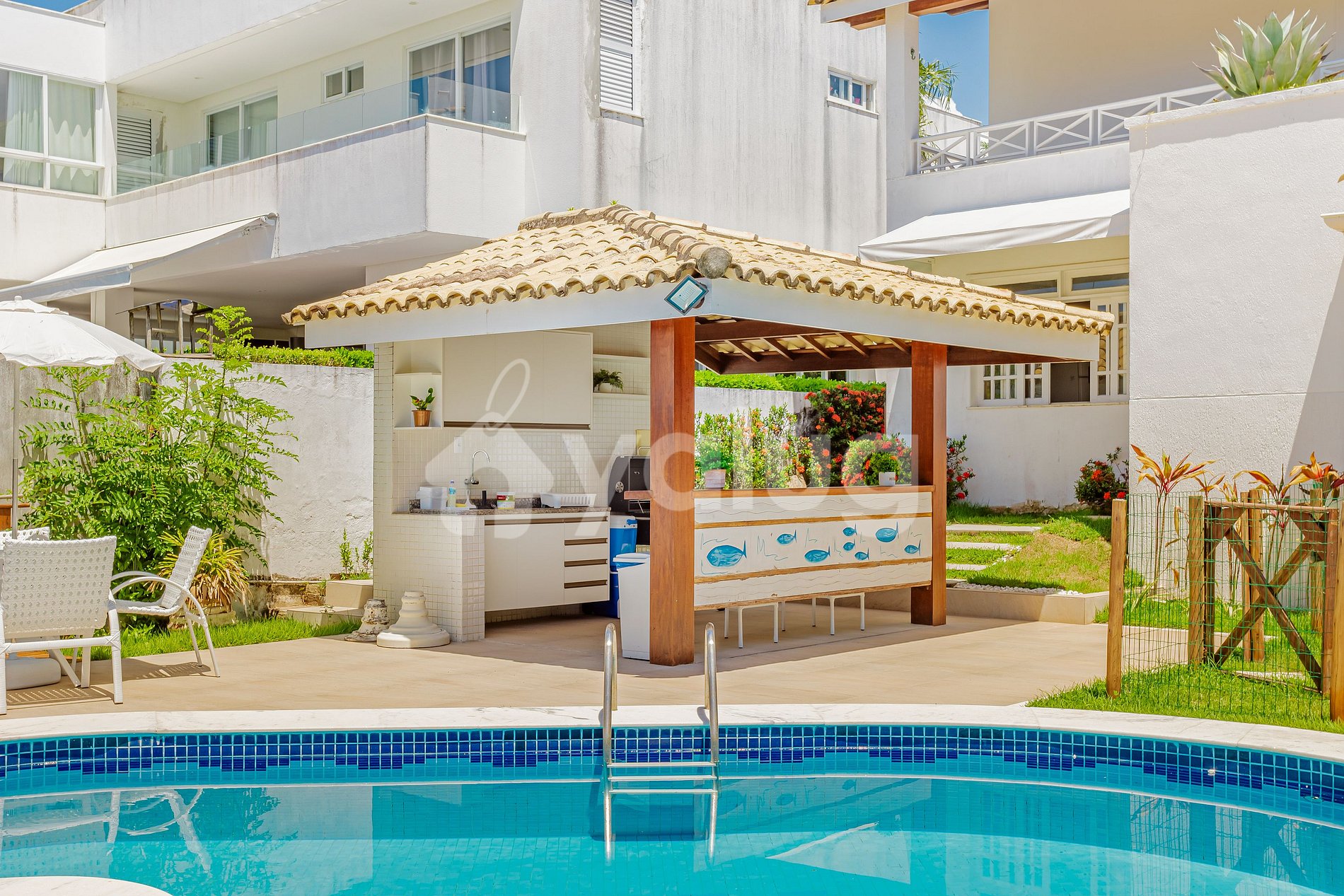 Esta maravillosa casa cuenta con 5 hermosas suites (2 con jacuzzi), cocina completa, sala, TV y comedor. El área gourmet cuenta con una increíble piscina, muebles de exterior, asador, jardín y muelle sobre el río.